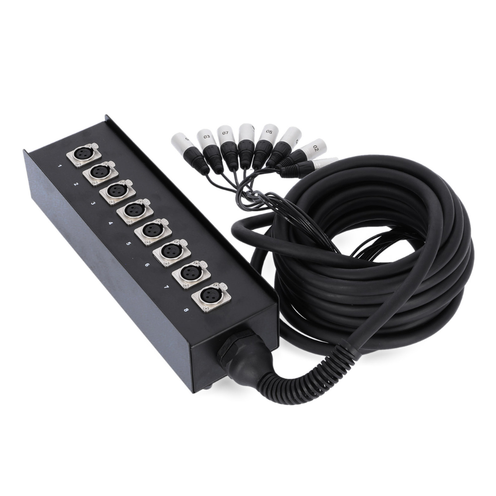 De Adam Hall 3 STAR Multicore 8-kanaals multikabel 10 m biedt de perfecte oplossing voor het aansluiten van bijvoorbeeld drums. De stagebox is namelijk voorzien van 8 XLR-ingangen. De lengte van 10 meter is vaak genoeg voor op de meeste podia of tijdens gebruik bij kleinere klussen. Het is uiteraard ook mogelijk om meerdere van deze kleinere multikabels op het podium te leggen, om het geluid vervolgens via een grotere multikabel bij de mixer uit te laten komen.