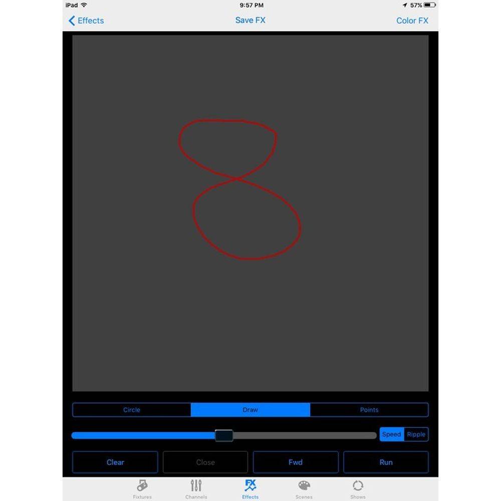 Door het downloaden van de American DJ Airstream app en vervolgens in te loggen op de American DJ Airstream DMX bridge krijg je toegang tot vele mogelijkheden. Via de app kun je eenvoudig op je tablet of telefoon alle lichteffecten instellen, zo krijg je een overzicht van alle effecten. Door op een lichteffect/fixture te klikken kun je elke functie apart aansturen, maar ook kun je deze inprogrammeren om je eigen show te maken.
