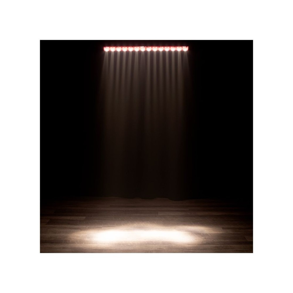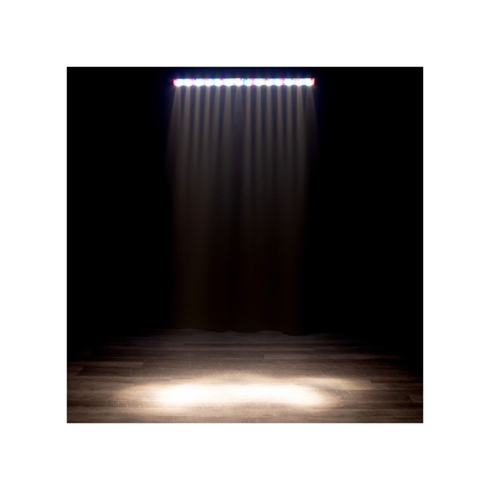 De Eliminator Lighting Frost FX BAR W is een lineaire entertainmentverlichtingsarmatuur van 1 meter die kleurwassingen en een adembenemend kleurachtervolgingseffect creëert. Het heeft twee soorten kleuren-LED's in één armatuur. Het heeft 14 witte LED's van 3W met ACL-lens aan de voorkant van het armatuur om intense straaleffecten te creëren. Bovendien heeft het 84 RGB SMD-LED's achter een matte plastic lens die gloeiende kleurachtervolgingspatronen creëren. Beide sets LED's werken onafhankelijk van elkaar.