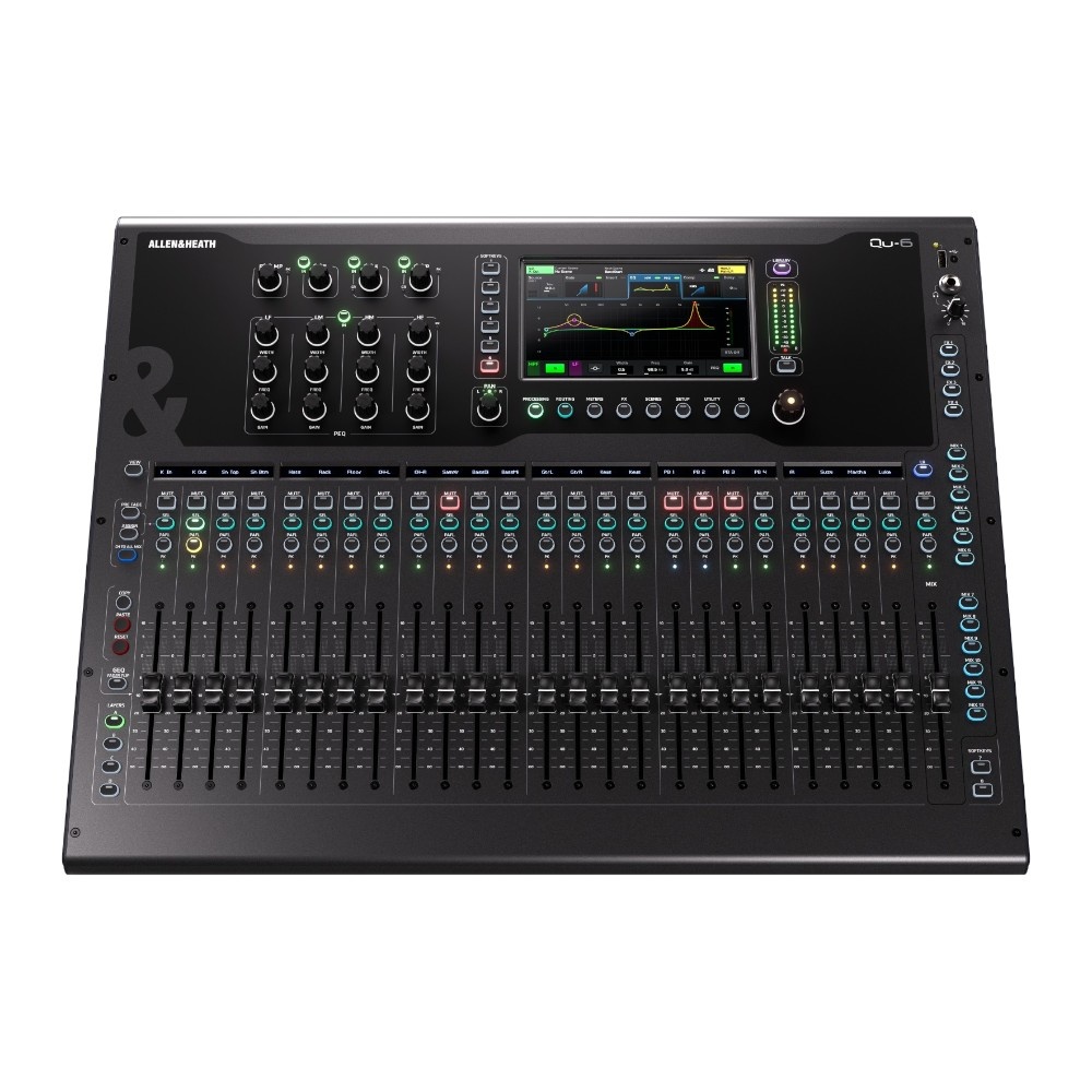 De Allen & Heath QU-6 maakt mixen eenvoudig met zijn vele geavanceerde audiotools. De automatische microfoonmixer en Feedback en Gain Assistants helpen je probleemfrequenties te mijden en behouden de niveaubalans van je mix. De 6 multi-FX-engines bieden ontzettend veel effecten, waaronder reverb, delay, sidechain, EQ en compressor. Ook heeft de QU-6 functies voor talkback en pre- en after-fader listen, voor nauwkeurige controle tijdens opnames of liveoptredens.