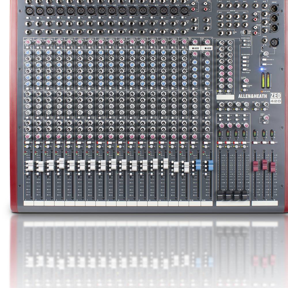 De ZED-420 van Allen & Heath is een mixer die voor uiteenlopende toepassingen geschikt is. Hij is uitgevoerd met 16 monokanalen voor instrumenten of microfoons en 2 stereokanalen voor het aansluiten van bijvoorbeeld CD-spelers. Natuurlijk kunnen ook condensator microfoons worden aangesloten, de ZED-420 heeft op elk kanaal een aparte schakelaar zitten voor 48V phantoomspanning.