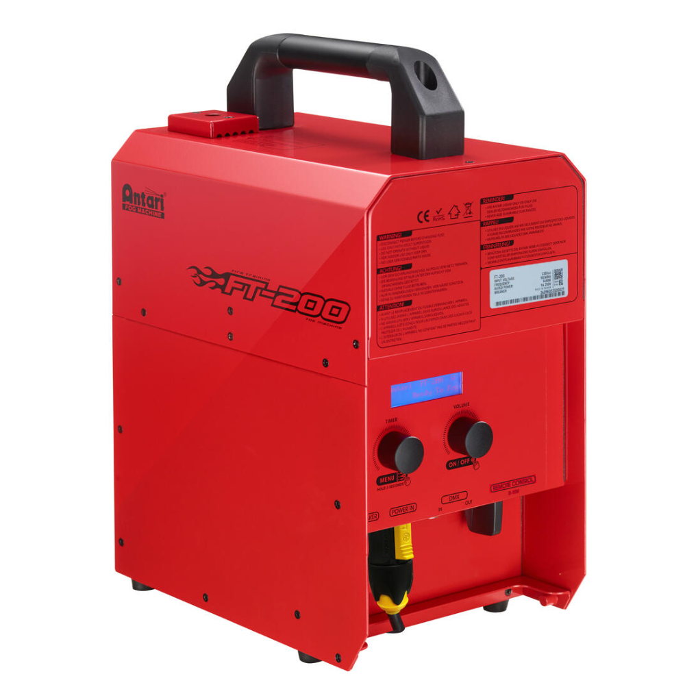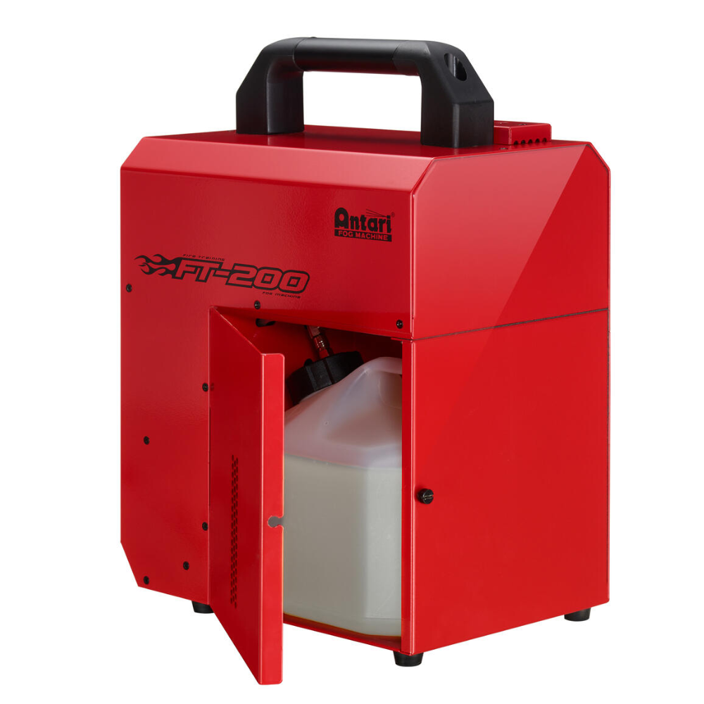 De kleur rood is niet standaard voor rookmachines, maar bij dit model heeft dat een grote reden. Deze Antari FT-200 is namelijk ontwikkeld voor brandweeroefeningen. De rookgenerator heeft dan ook een aantal aanpassingen hiervoor, zo heeft hij 2 grote draai-/drukknoppen, hiermee is het zelfs mogelijk om de machine te bedienen met handschoenen aan.