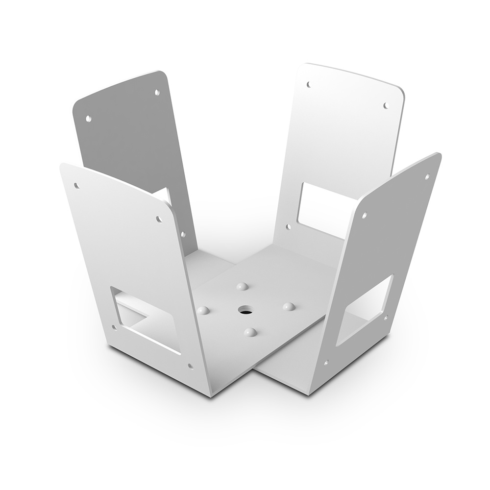 Deze witte Apart MASKCW-W W-beugel kan maar liefst vier luidsprekers van hetzelfde type dragen. De basis van de Clickmount-beugel van de MASK-speakers past precies op de beugel.