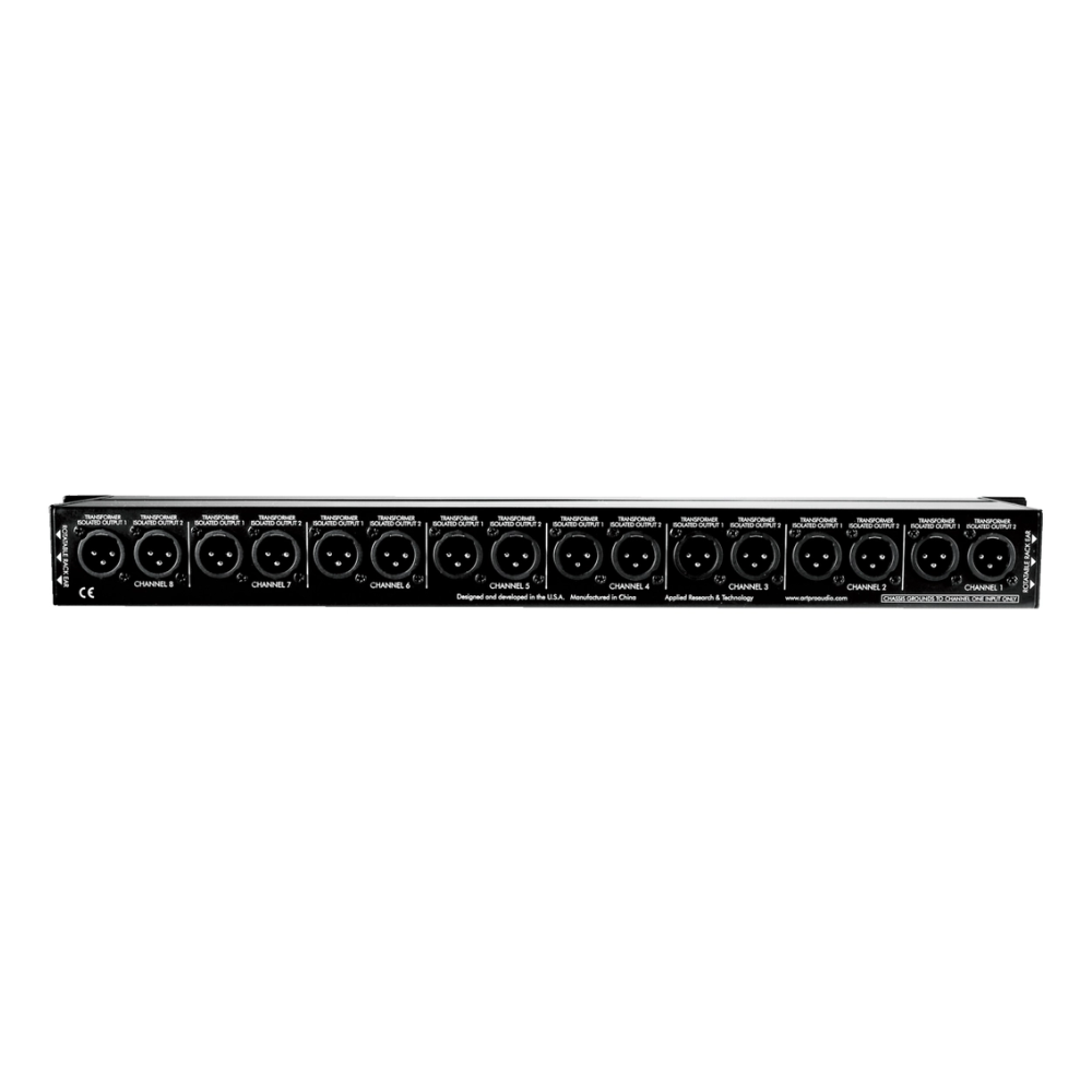 - 8 gebalanceerde XLR-ingangen en per kanaal één directe en twee transformator-geïsoleerde uitgangen