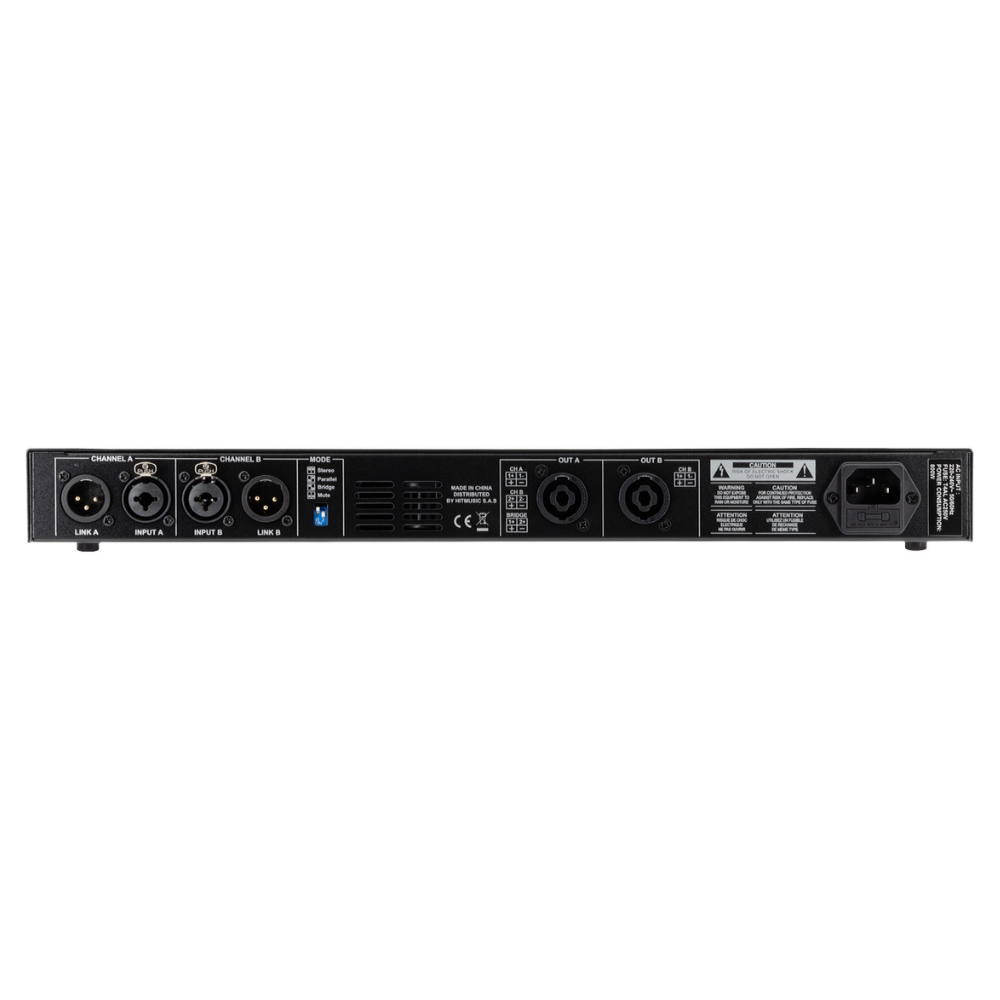 - Krachtige, energiezuinige klasse D stereo-eindversterker in compact 1U-rackformaat