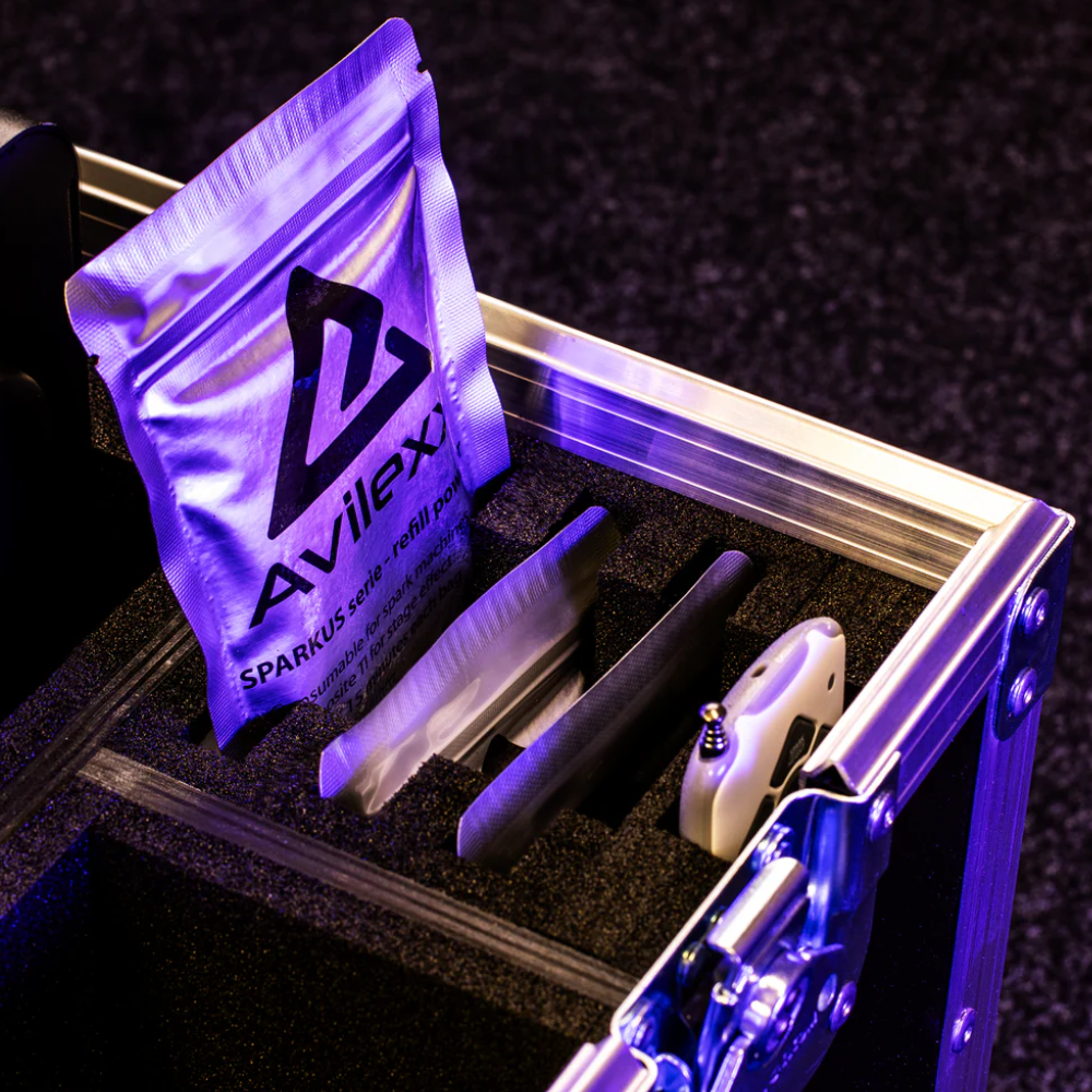 De Avilexx premium flightcase voor Sparkus 6 2-in-1 beschermt je koudvuurfontein set tijdens transport en opslag. Handgemaakt in Nederland met robuuste componenten en slimme indeling voor kabels, poederzakjes en afstandsbediening.