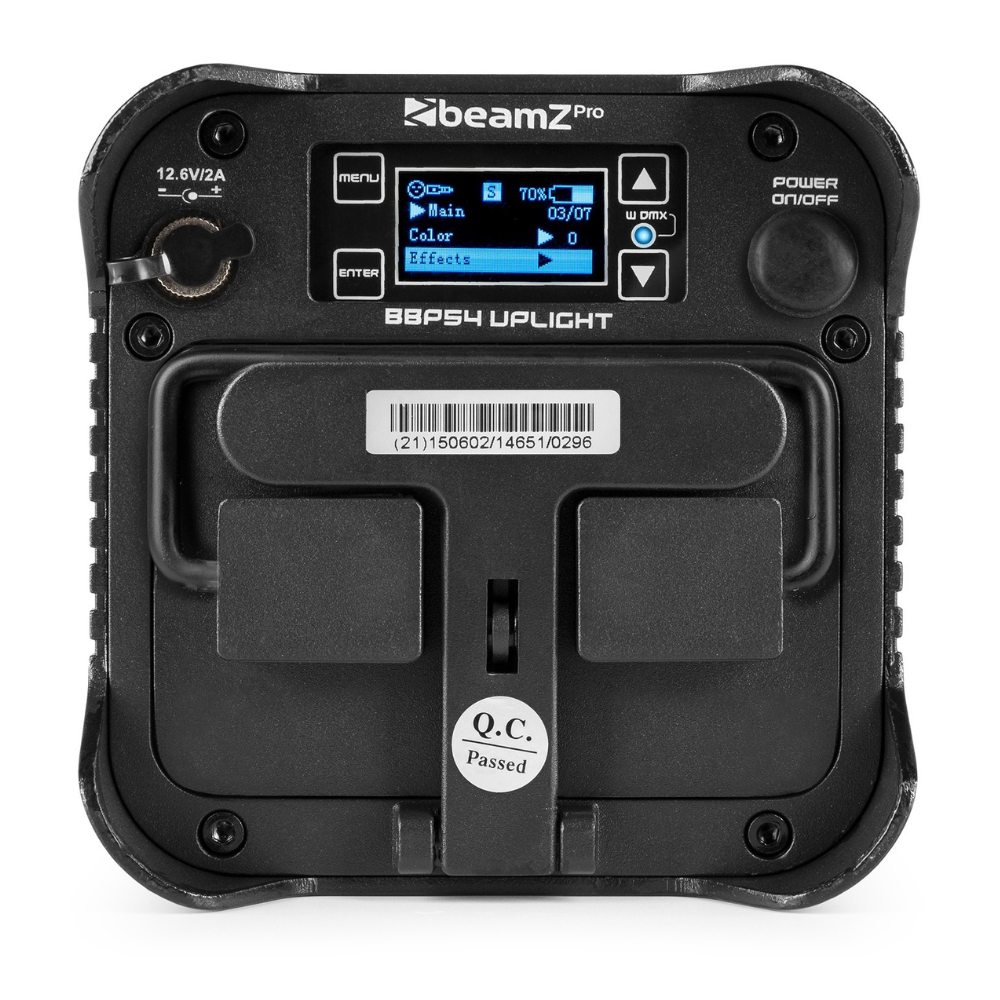 De BBP54 wordt geleverd met een vervangbare accu module die tot 15 uur meegaat, afhankelijk van kleur en intensiteit. Dankzij de snelle oplaadtijd van slechts 3 uur is de Par snel weer klaar voor gebruik. Het overzichtelijke O-LED display met password lock zorgt voor eenvoudige bediening en veilige instellingen.
