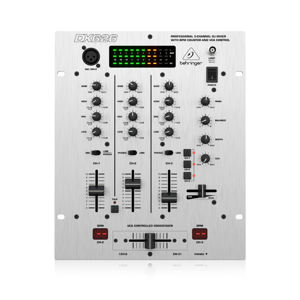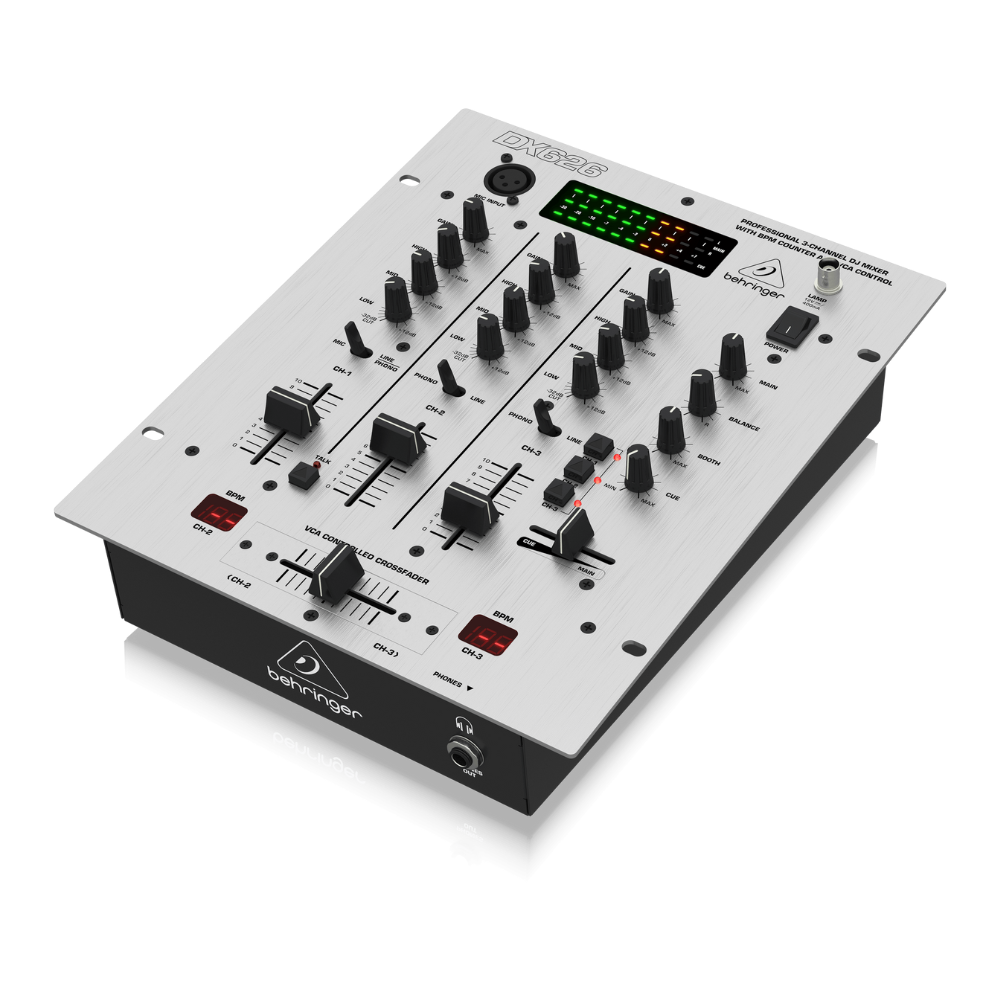 De Behringer DX626 3-kanaals DJ-mixer is voorzien van een BPM-counter en nette led-VU-meters. Ook handig is de talkover-functie die handmatig is in te stellen. Hierbij gaat het lijnvolume altijd naar beneden, zodra de microfoon gebruikt wordt.