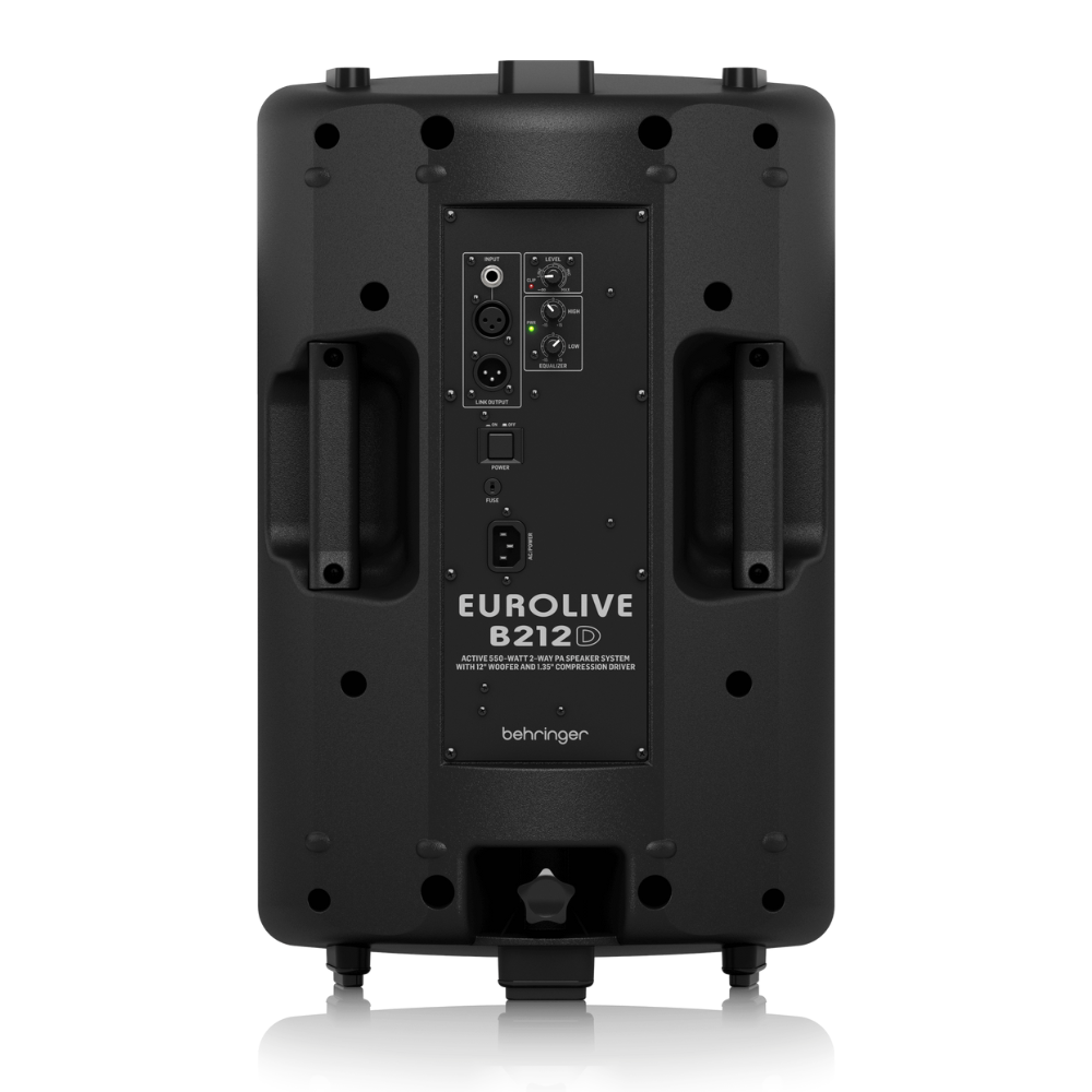 De Behringer Eurolive B212D is een klerenkast van een speaker met zijn 12 inch-woofer en 1,35 inch-compressiedriver, die samen goed zijn voor een maximale SPL van maar liefst 125 dB! De B212D actieve luidspreker creëert ook een erg dynamisch geluid door zijn grote frequentiebereik van 65 Hz tot 20 kHz. Ondanks zijn vermogen is de Eurolive luidspreker gemakkelijk te vervoeren. De kunststof kast weegt slechts 14,5 kg en pak je aan zijn ergonomische handgrepen eenvoudig vast, zonder je rug te hoeven breken. Een gekantelde positionering is ook mogelijk, waardoor je de B212D als vloermonitor kan gebruiken.