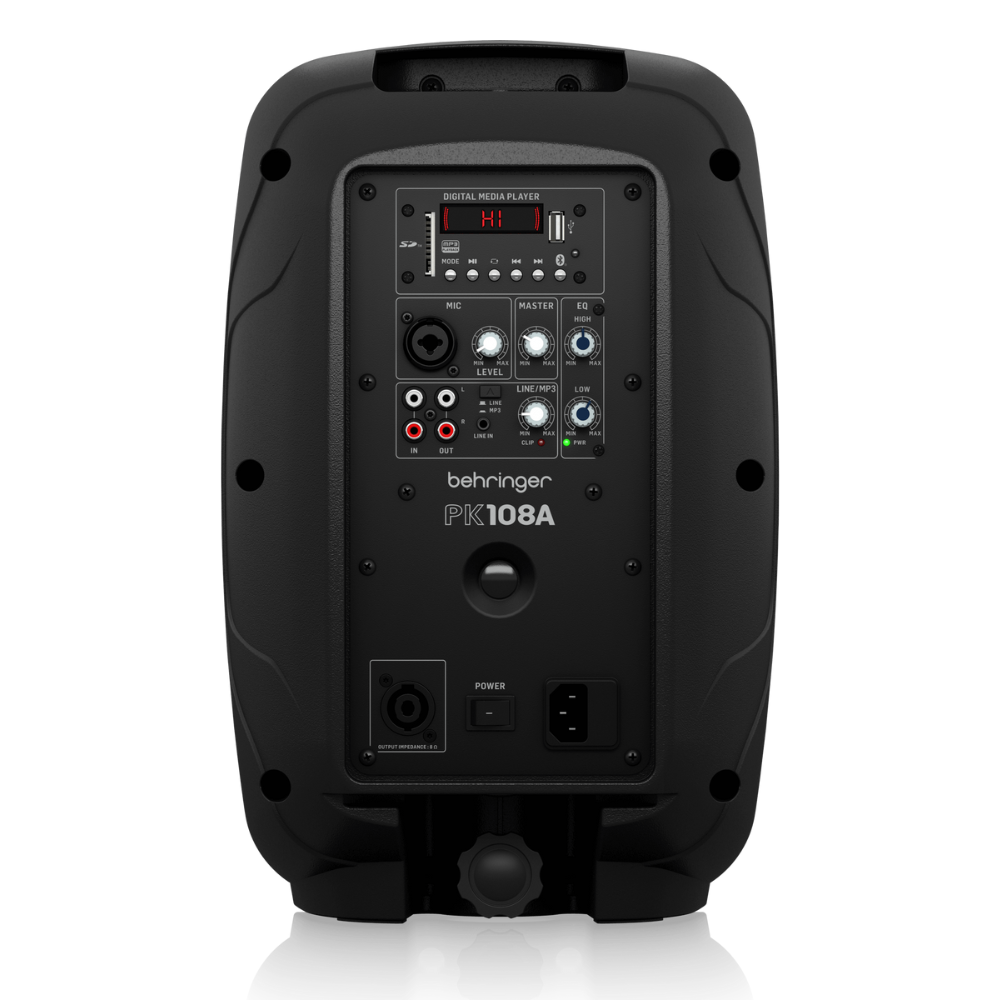 Wil je het geluid vergroten of zonder laptop muziek draaien? De Behringer PK108A heeft een RCA/line-out om door te lussen naar een extra speaker en een Speaker Twist-uitgang voor een passieve luidspreker. De ingebouwde speler leest USB-, SD- en TF/MMC-media, en via Bluetooth stream je draadloos je playlists.
