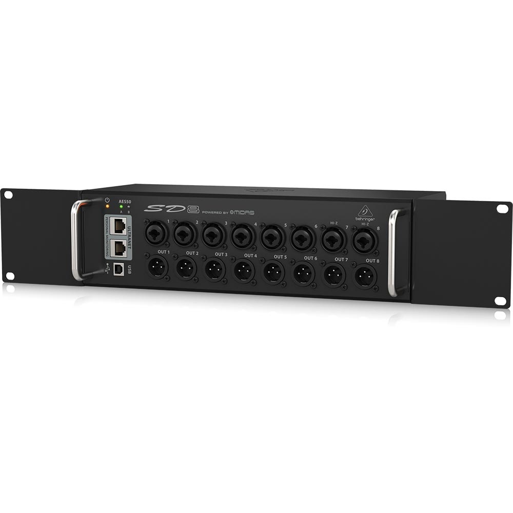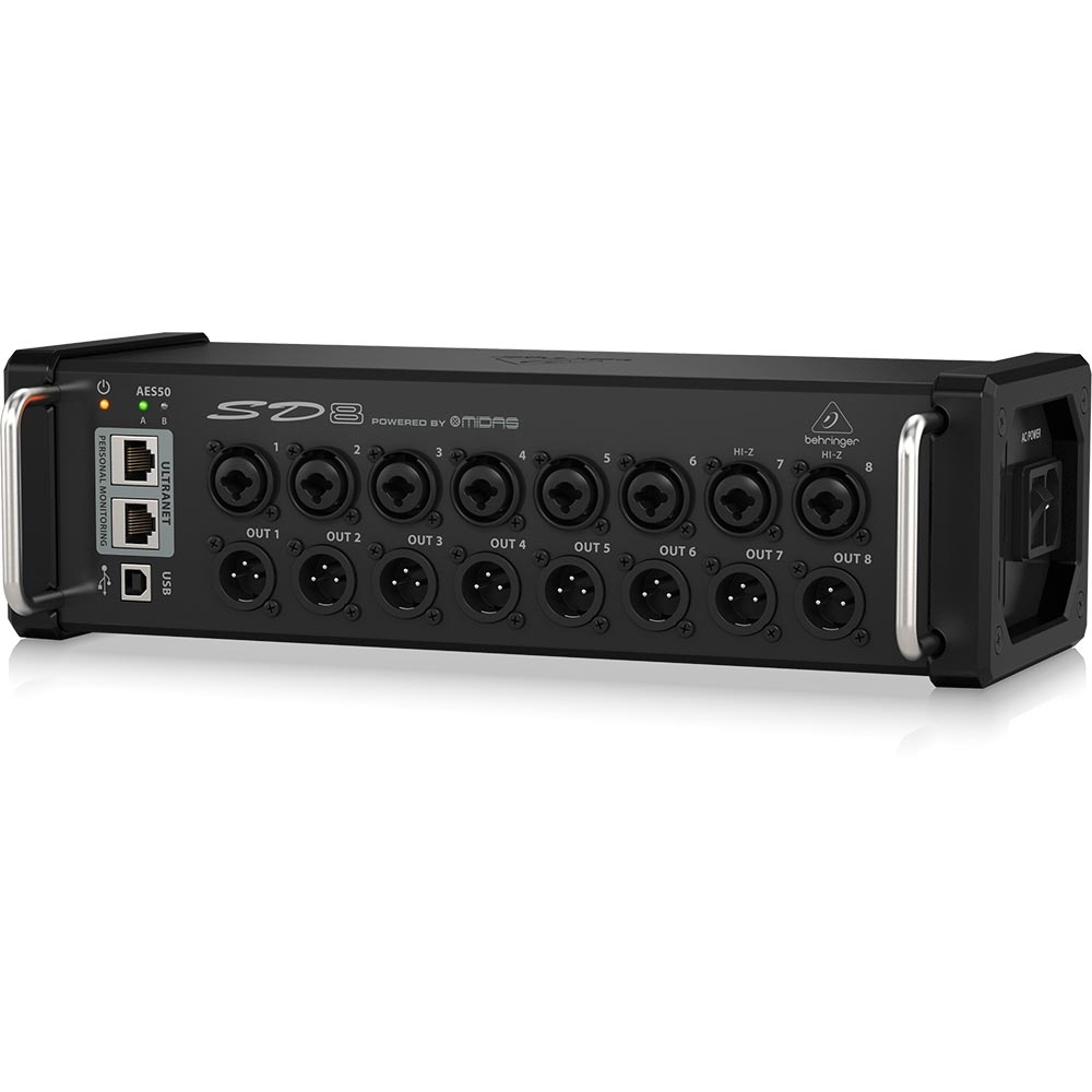 Op de Behringer SD8 zijn acht analoge XLR-uitgangen te vinden. Je verbindt hem dus moeiteloos met je versterker, speakers en monitors op het podium. Daarnaast is de stagebox voorzien van twee netwerkpoorten zodat hij gebruikt kan worden met de P16-M persoonlijke monitormixers. Bovendien koop je de Behringer SD8 voor jarenlang plezier. Hij kan namelijk het zware podiumgebruik gemakkelijk aan. Met zijn metalen behuizing, metalen handgrepen en rubberen bumpers is hij optimaal beschermd.