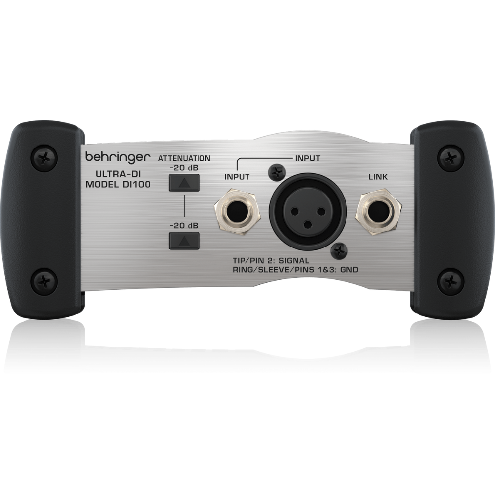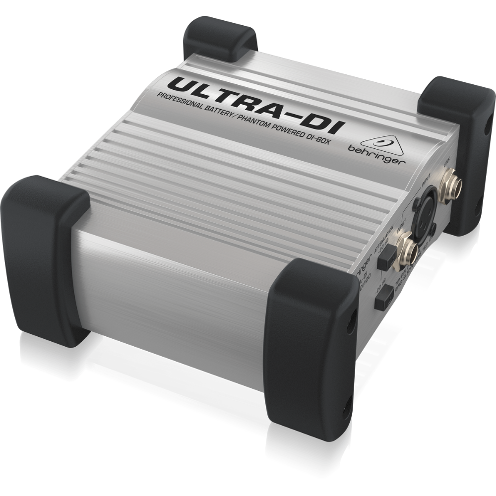 De Behringer Ultra-DI DI100 Actieve DI-box zet instrument- of line-signalen om naar een gebalanceerde XLR-uitgang met zeer lage ruis. Met ground-lift en schakelbare pad voorkom je brom en clipping. Werkt op phantom power of 9V batterij.