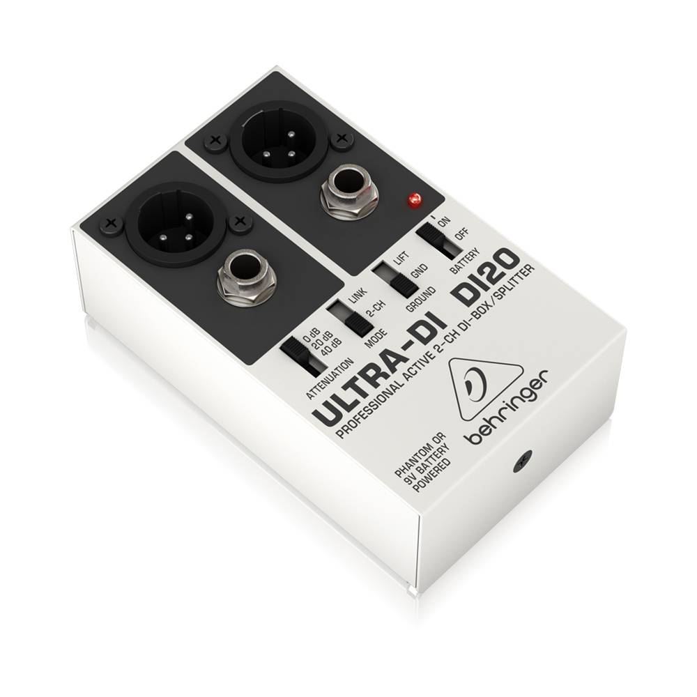 De Behringer Ultra-DI DI20 actieve 2-kanaals DI box & splitter is erg handig voor gebruik op het podium of in de studio. Je kunt er 2 instrumenten met een mixer of een versterker verbinden. De DI-box is voorzien van een batterij die 9 V spanning geeft. Deze batterij wordt automatisch uitgeschakeld als fantoomstroom wordt gegeven door bijvoorbeeld een mengpaneel.