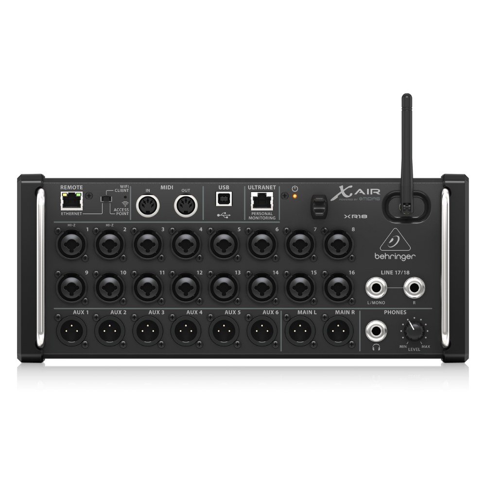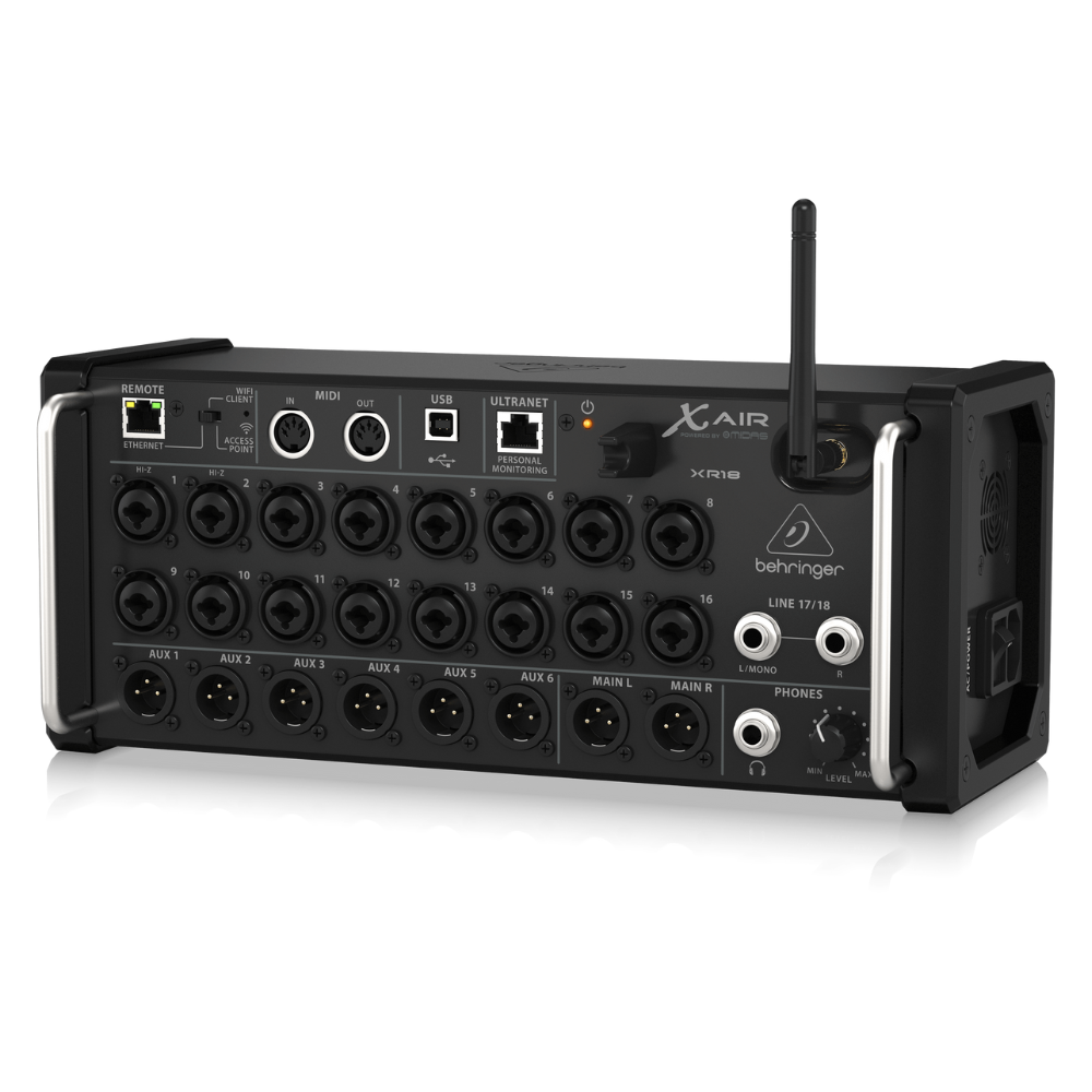 Zoek je een krachtige mixer die weinig ruimte inneemt en toch alles aan kan in live en studio? De Behringer X-Air XR18 digitale mixer is een compacte stagebox die je draadloos bedient via tablet of laptop, met een ingebouwde wifi-router zodat je direct aan de slag kunt. De XR18 is de grootste mixer uit de X-Air serie van Behringer en combineert 16 Midas pre-amps met 2 extra lijningangen voor hoogwaardige geluidskwaliteit en modern mixen met gemak.