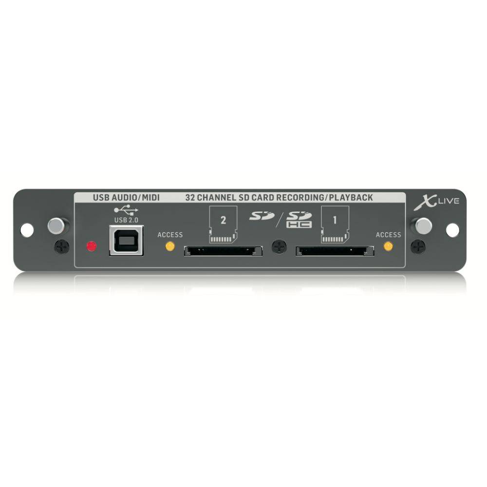 De Behringer X-Live is een uitbreidingskaart voor de X32 digitale mixer. Hij maakt het mogelijk om 32 kanalen op te nemen op een SD/SDHC kaart. Uiteraard is het ook mogelijk om hem te gebruiken voor het afspelen van de opgenomen files.