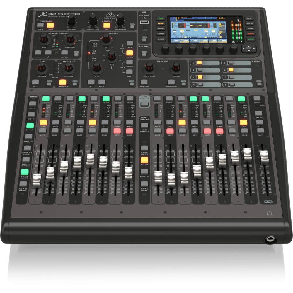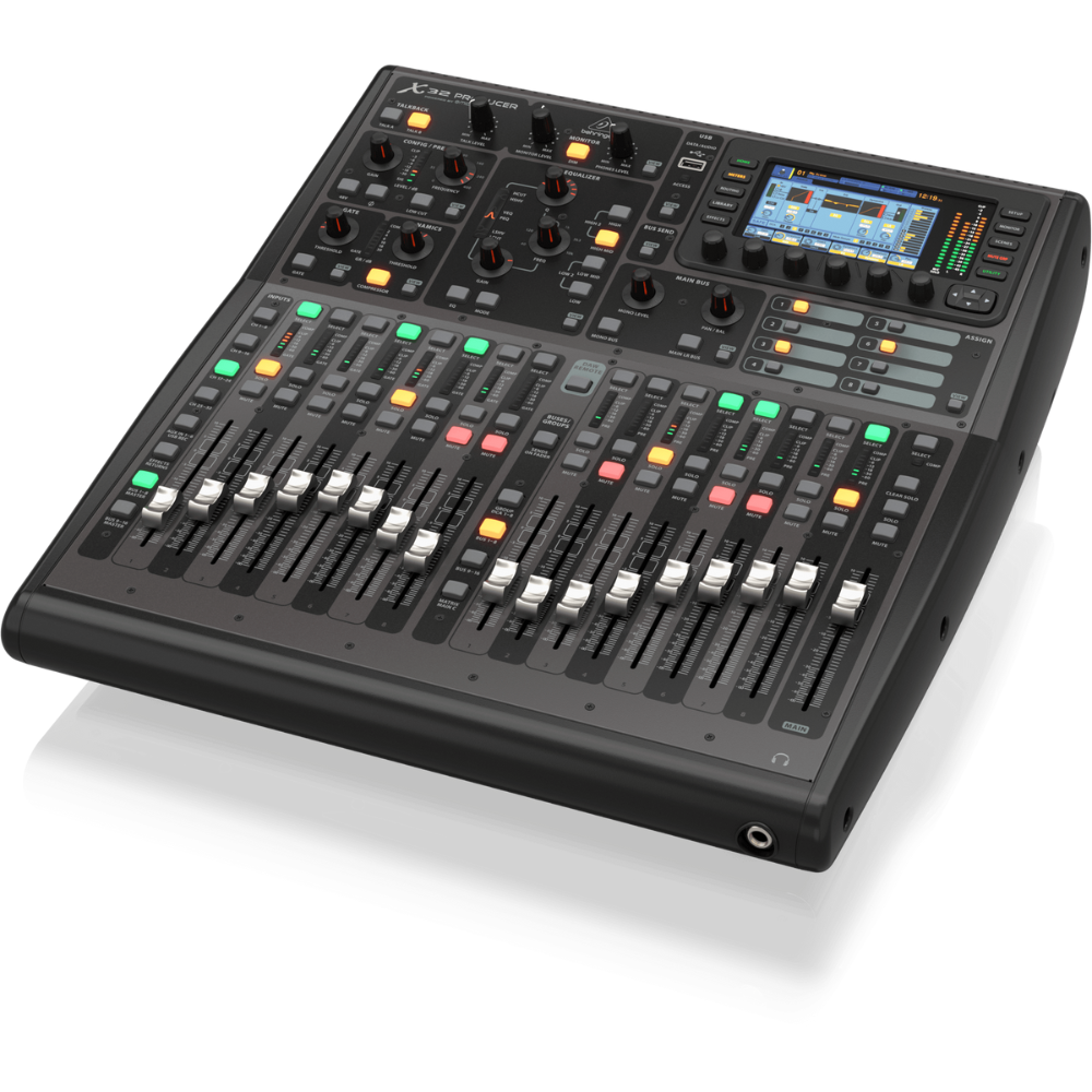 De Behringer X32 Producer digitale mixer is erg veelzijdig. Dankzij de legendarische ingebouwde X32-mixengine kan de X32 PRODUCER vandaag uw eersteklas studio-opname-interface zijn, morgen een complexe theaterproductie besturen of veilig in uw zijrek zitten terwijl u het cluboptreden van uw band mixt vanaf uw iPad. De ongelooflijke X32 PRODUCER is een revolutie in de wereld van de mixers en combineert de beste analoge I/O en krachtige digitale connectiviteit met ruime verwerking voor 40 kanalen, 25 bussen en tot wel 152 signaalbronnen.