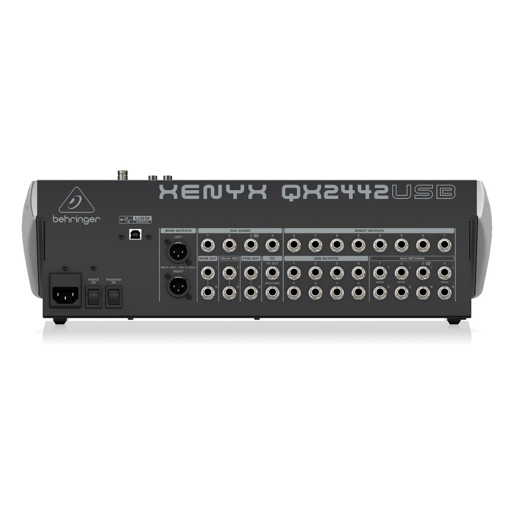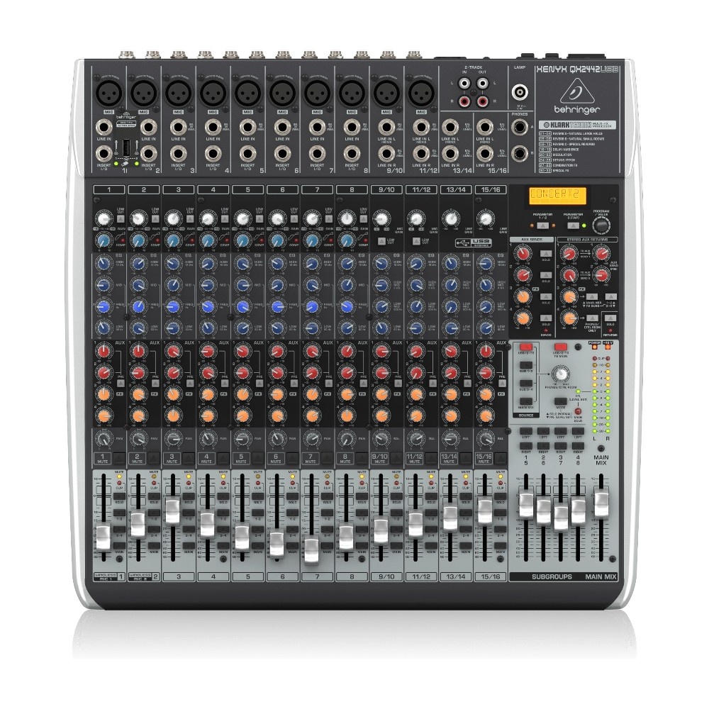 De Behringer Xenyx QX2442USB PA en studiomixer is met maar liefst 10 microfooningangen met de legendarische Xenyx-voorversterkers en fantoomvoeding en 8 mono- en 4 stereokanalen de grootste variant in deze serie van mengpanelen. Opnemen in superieure kwaliteit was nog nooit zo toegankelijk, zowel in de studio als live. Elk kanaal bevat diverse bedieningselementen waarmee je totale controle houdt over ieder audiosignaal: 60 mm faders, pan- en mute-knoppen, een 'Britse' 3-bands EQ en één-knopscompressors op de microfoonkanalen voor snelle grip op het dynamisch bereik.