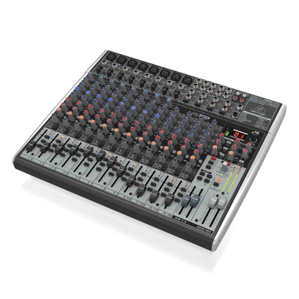 Met de Behringer Xenyx X2222USB PA en studiomixer ben je voorzien van alle benodigde opnamefuncties: 8 XLR-microfooningangen met Xenyx-voorversterkers en fantoomvoeding, en 8 mono- en 4 stereokanalen, 60 mm faders en op elk kanaal bediening voor pan, mute, 3 aux-sends en een 'Britse' 3-bands EQ. De mono-kanalen hebben één-knopscompressors waarmee je het dynamisch bereik snel onder controle krijgt.