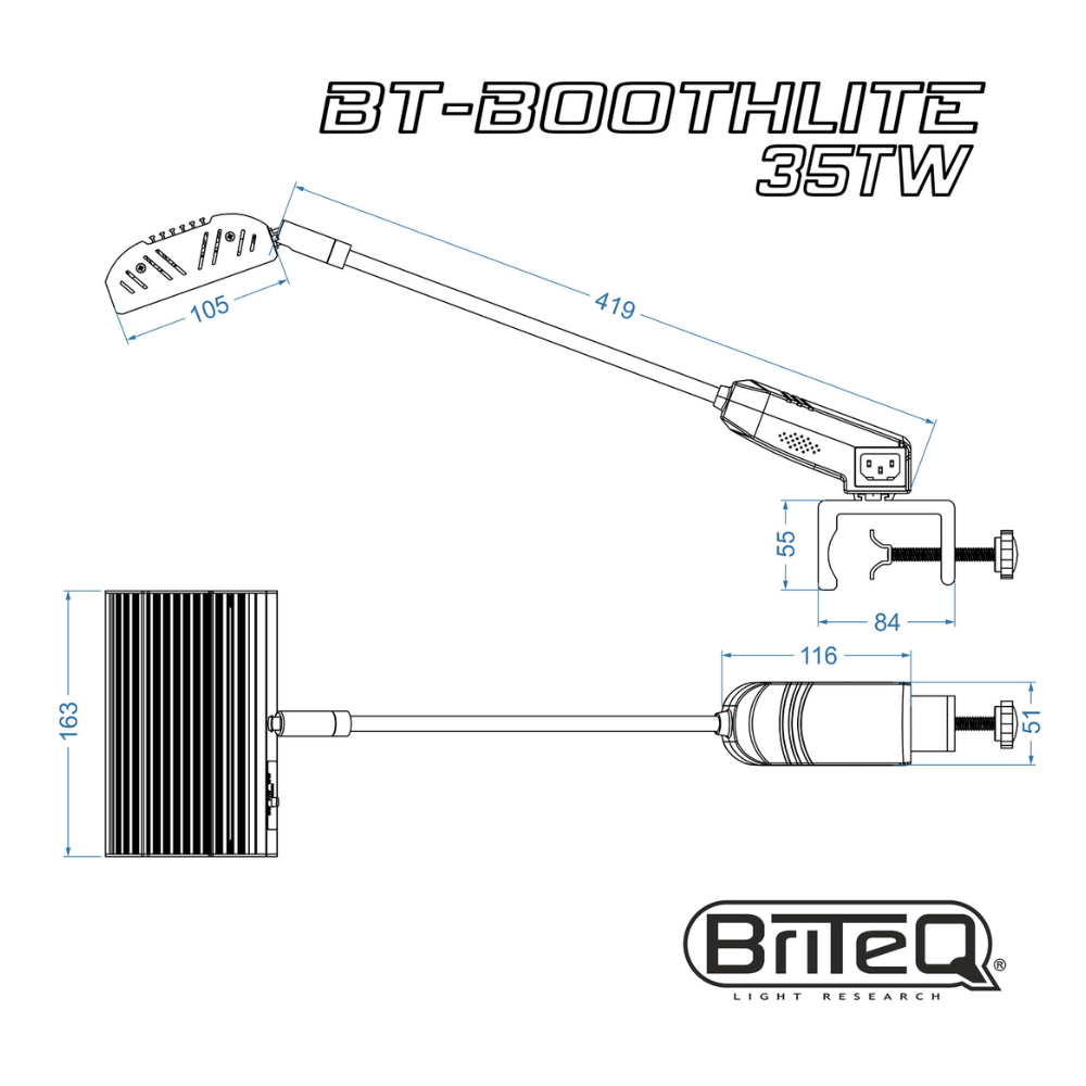 Specificaties Briteq BT-Boothlite 35TW LED lamp met klem: