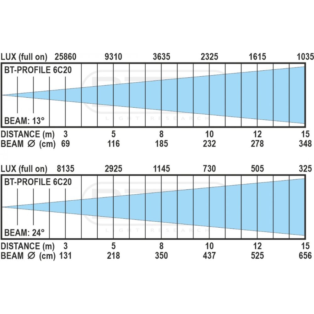 - Lichtopbrengst: 9310 lux @ 5 m (13°), 4320 lux @ 5 m (22°)