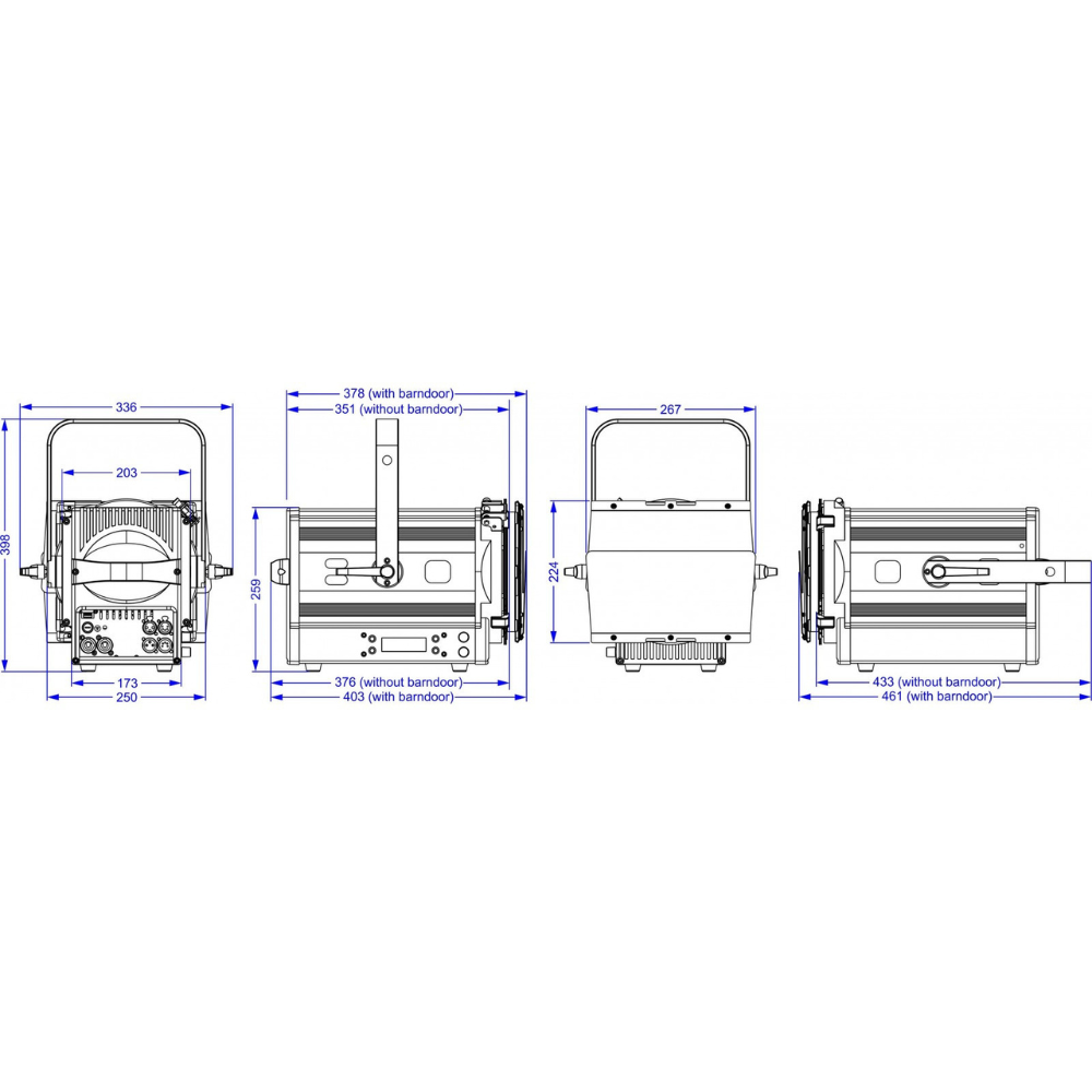 - 250 W LED met output vergelijkbaar met 2 kW halogeen Fresnels