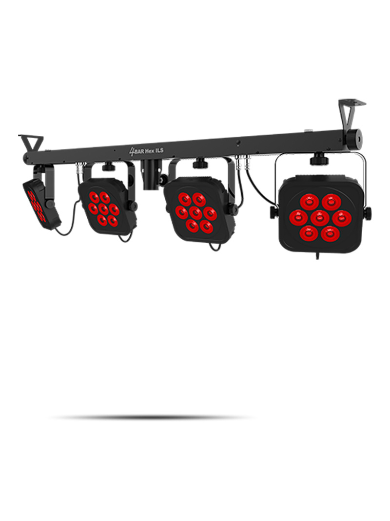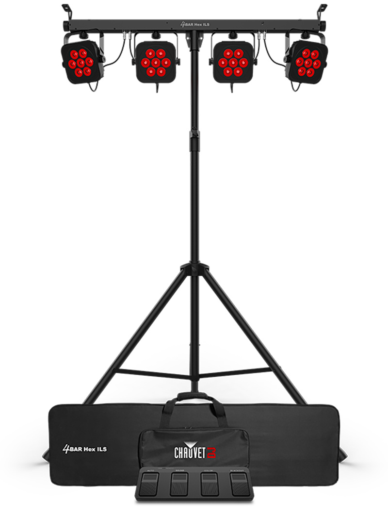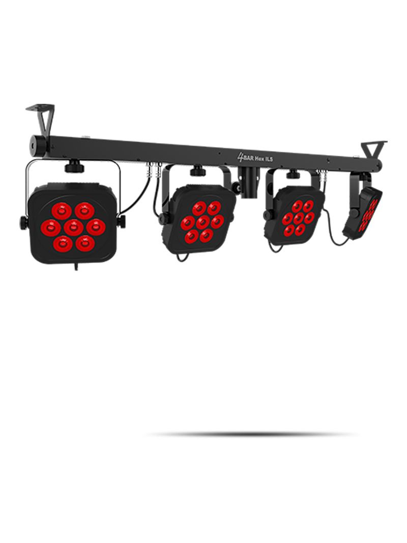 De 4BAR Hex ILS heb je een complete lichtopstelling die direct klaar is voor gebruik. Dankzij de vier krachtige LED spots, die elk zes kleuren (rood, groen, blauw, amber, wit en ultraviolet) combineren, kun je vrijwel elke kleur creëren. Doordat de spots afzonderlijk verstelbaar zijn kun je eenvoudig een hele ruimte of podium gelijkmatig verlichten.