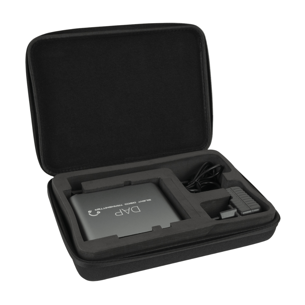 450 meter bereik met de draadloze 3-kanaals DAP Silent Disco zender