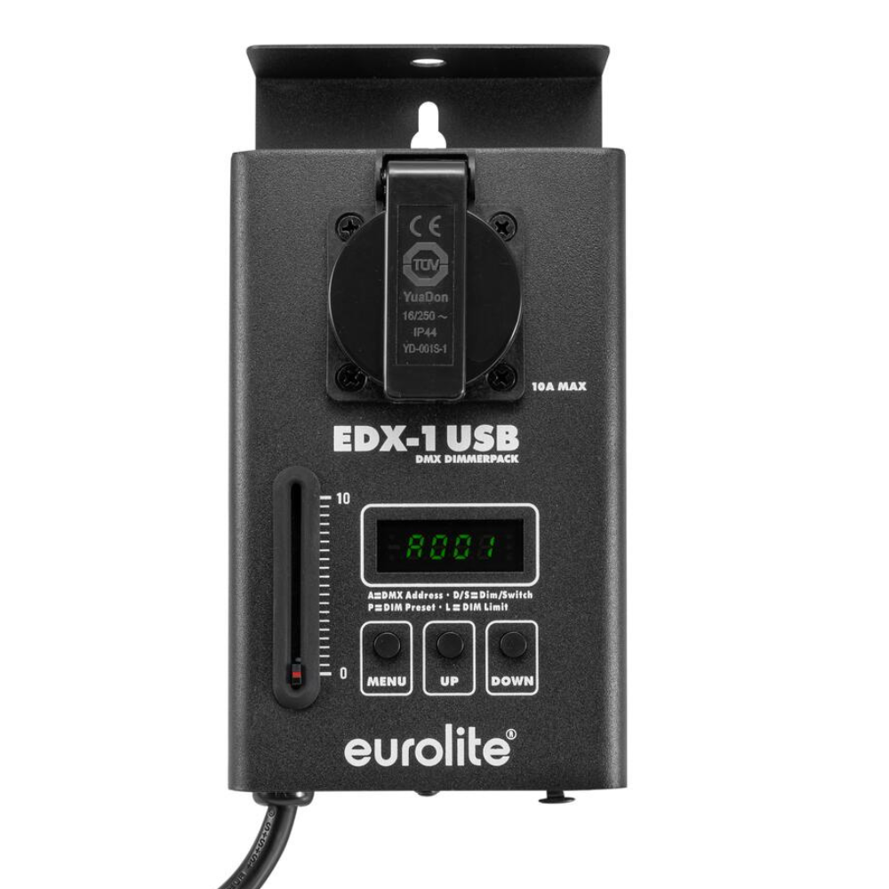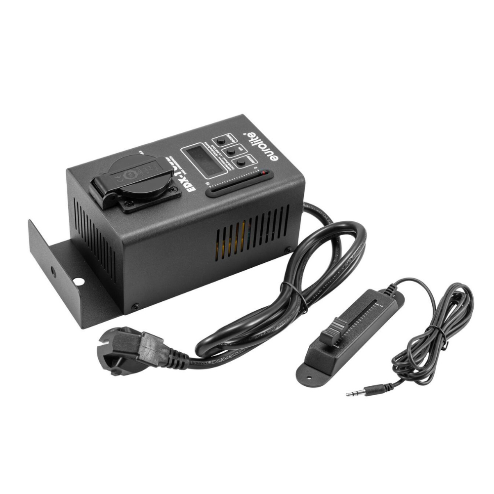 De Eurolite EDX-1 DMX USB Dimmerpack is een 1-kanaals dimmerpack. Hij is aan te sturen via stand-alone mode, DMX, via de meegeleverde bedraade afstandsbediening of via USB (optioneel). Ook heeft hij een robuuste metalen behuizing en is hij volledig stil.