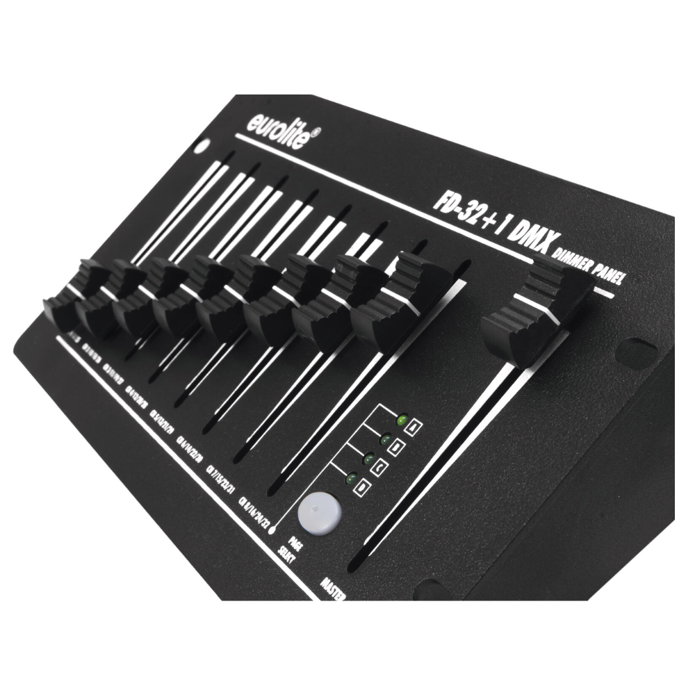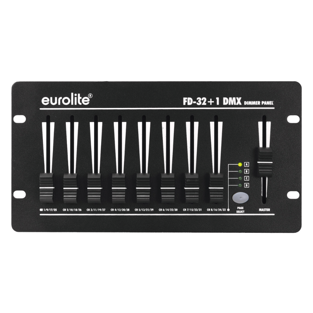 De Eurolite FD-32+1 DMX Dimmer Panel controller met 32 kanalen werkt direct plug-and-play, zodat je snel klaar bent voor creatieve lichtsturing. Met 8-kanaals én master fader, DMX/XLR-uitvoer en geruisloze werking. Voor allerlei spotlights en dimmers.