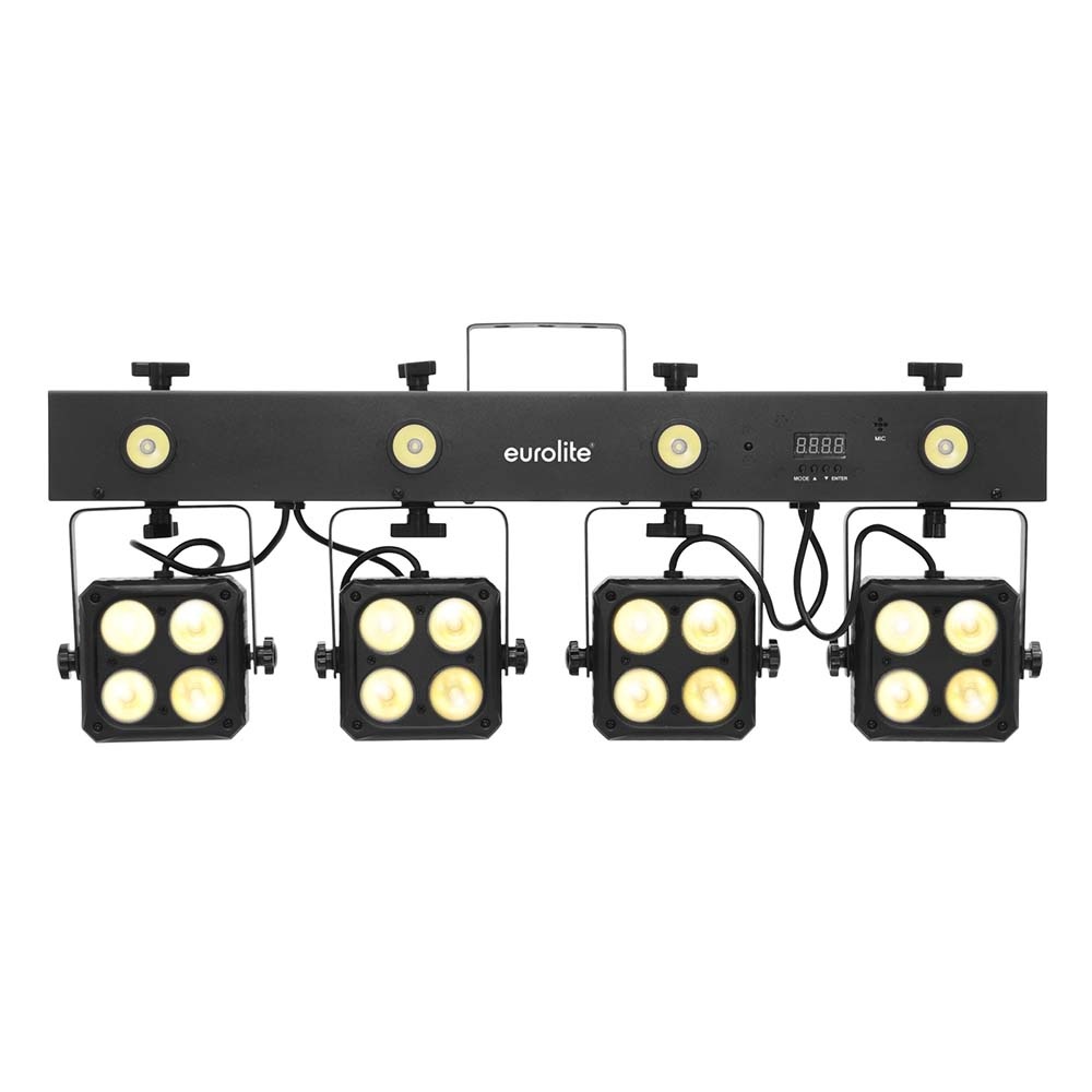 - DMX lichteffect bar met 4 RGBW LED spots en 4 witte LED's (stroboscoop)