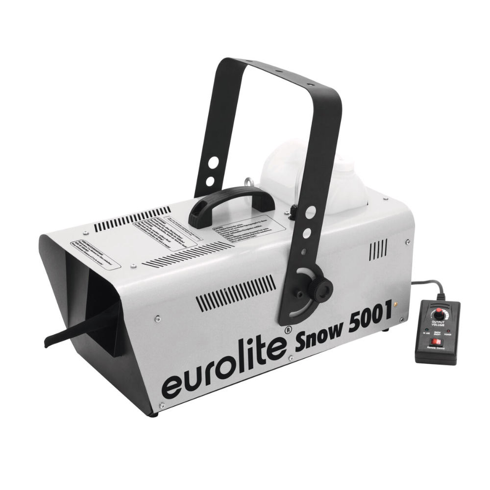 Laat die sneeuw maar vallen met deze voordelige Eurolite bundel: met de Snow 5001 sneeuwmachine 1500W bundel inclusief 5 liter sneeuwvloeistof creëer jij razendsnel een wonderlijk wit sneeuwlandschap. De Snow 5001 machine zorgt voor een geleidelijke sneeuw-/schuimopbouw die ook langzaam oplost (vrijwel zonder residuen). De afstand pas je aan van 0 tot 2 meter en besturing gaat via de bedrade afstandsbediening. De meegeleverde sneeuwvloeistof van Eurolite is reukloos, van hoogwaardige kwaliteit en optimaal geproduceerd voor Eurolite en Antari sneeuwmachines.