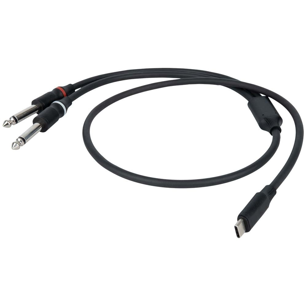 Deze DAP FL111 verloopkabel USB-C naar 2x jack mono verloopkabel verbindt elk apparaat met USB-C aansluiting met een audio apparaat met jack mono input connectoren. Flexibele kabel, verkrijgbaar in verschillende lengtes.