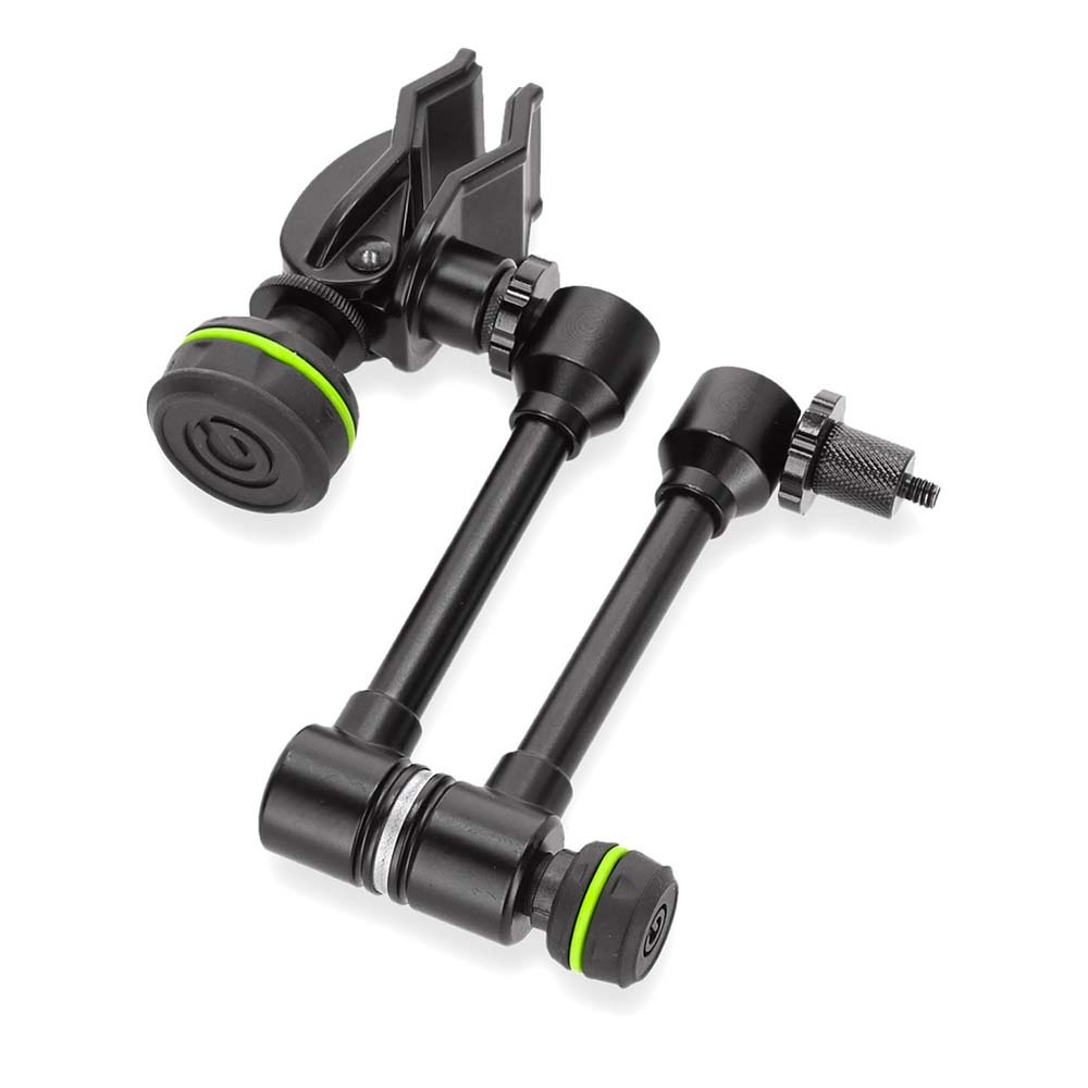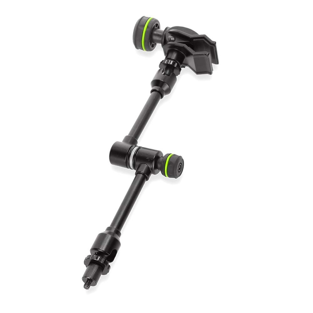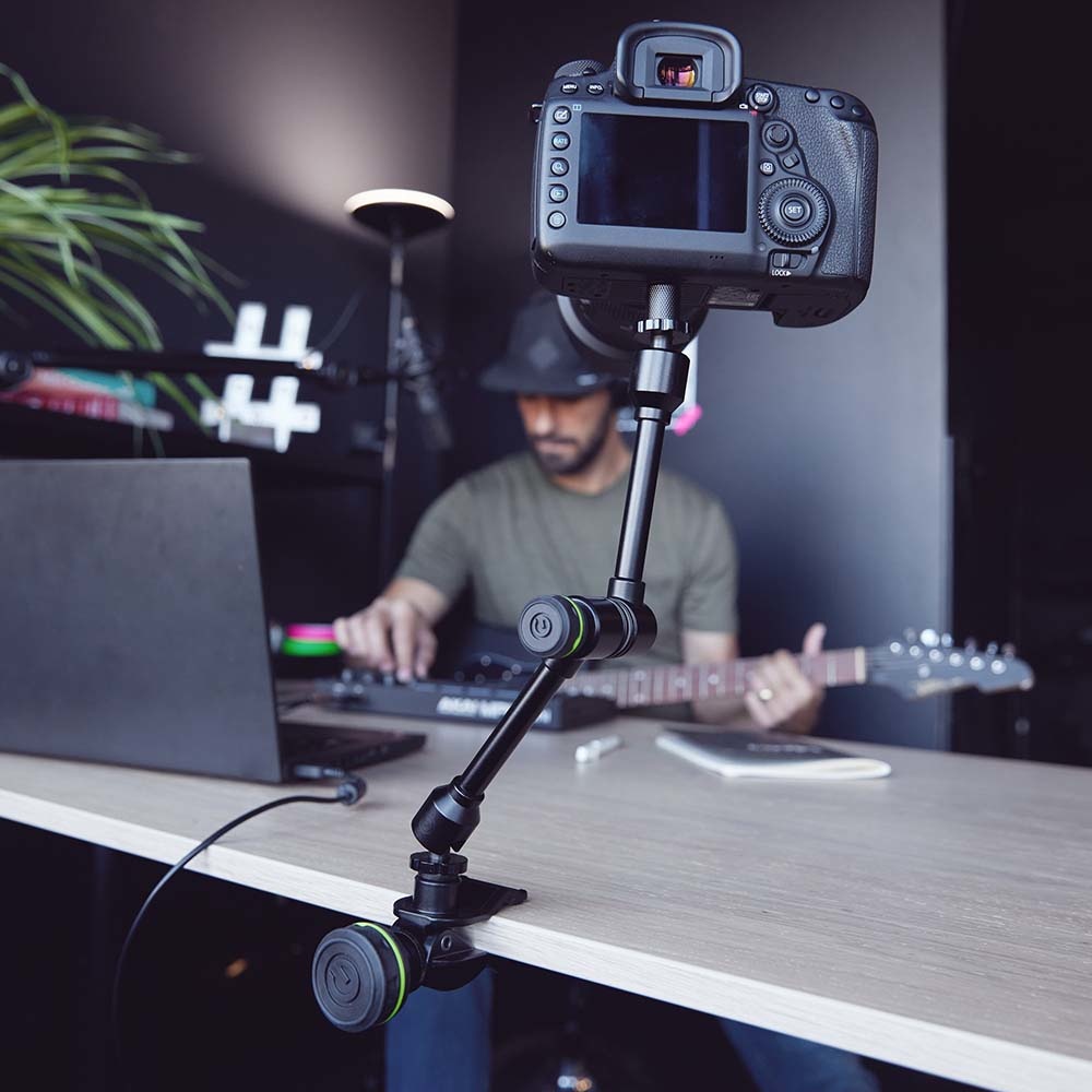 Omdat de Gravity MA VARIARM M38 drie scharnierpunten heeft waarvan er twee kogelgewrichten zijn, kun je hem in vrijwel alle denkbare posities zetten. En het handige is dat hij met één vleugelmoer volledig te vergrendelen is. Omdat hij een draagkracht heeft van 3 kg kun je ook de wat zwaardere microfoons of camera's bevestigen. De klem onderaan de MA VARIARM M38 heeft een groot bereik 15 tot 35 mm en kan aan zodoende gemakkelijk vastgemaakt worden aan de meeste tafels en statieven.