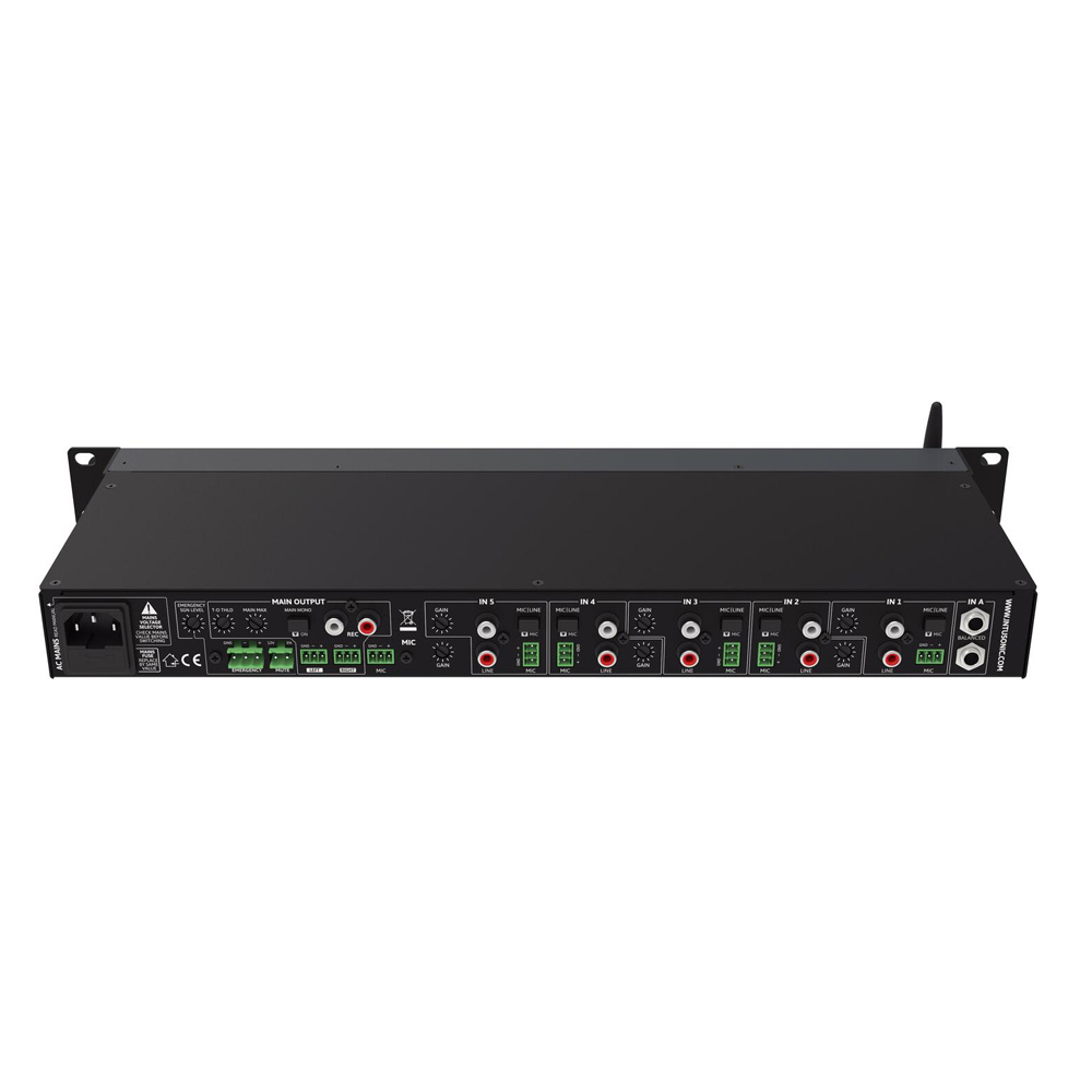 De Intusonic PAA71 7-kanaals mixer is een compacte 1U alleskunner voor vaste installaties. Met schakelbare bronnen (AUX of ingebouwde draadloze ontvanger), een EQ per kanaal en met talkover mix je moeiteloos microfoons en muziek tot een helder geheel.