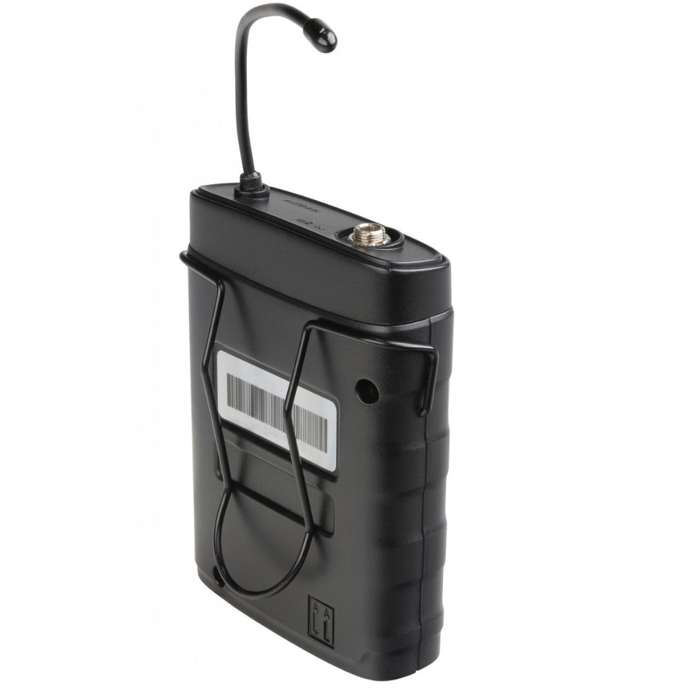 - Type: draadloze beltpack-zender met lavalier-microfoon