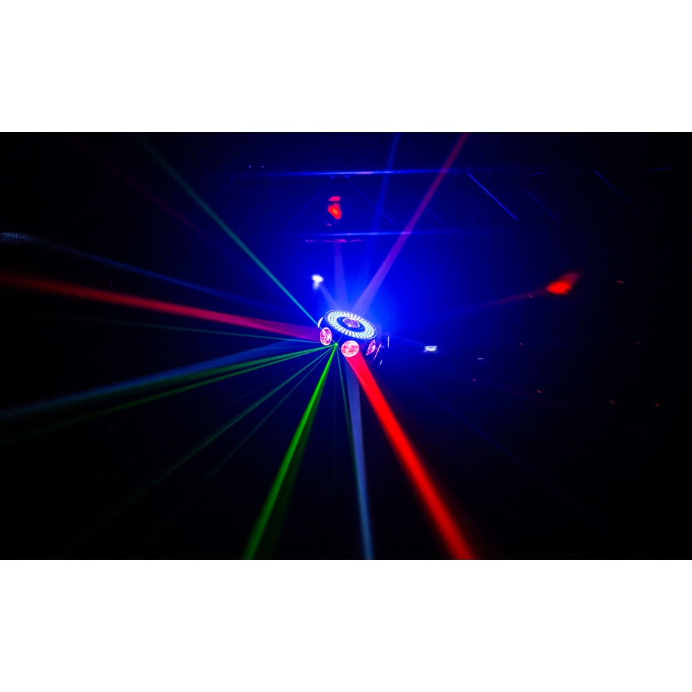 - 4-in-1 multi-lichteffect met LED-bundels, chase-LEDs, strobe en RGB-lasers