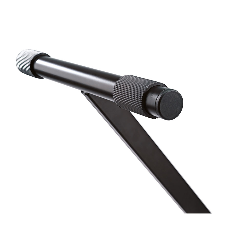 Deze K&M 18930 keyboardstandaard met X-vorm heeft veel praktische mogelijkheden. Door middel van de ergonomische klemhendel kun je de positie in stapjes van 5 graden aanpassen, en met de verplaatsbare rubberen kappen kun je zelf de gewenste diepte kiezen.
