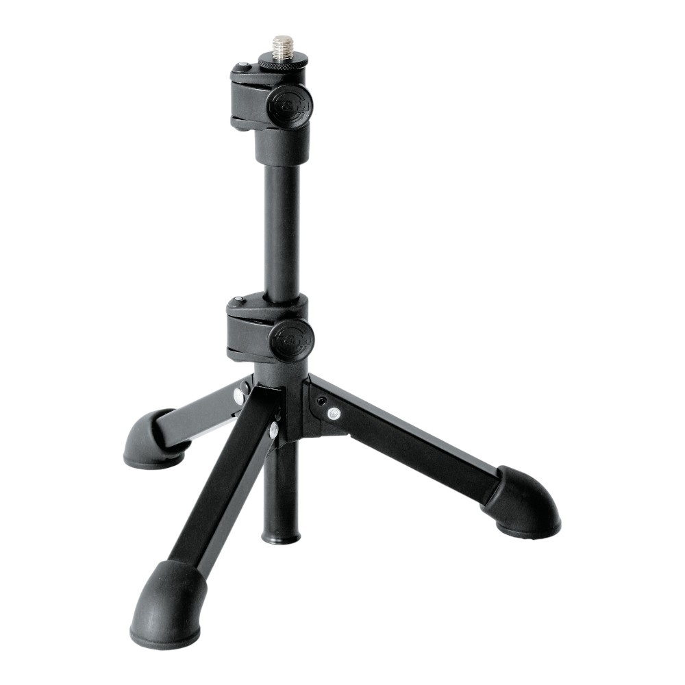 De K&M 23150 microfoon tafelstatief inklapbaar is veelzijdig inzetbaar door het telescopisch ontwerp en 3/8 inch-schroefdraad. Met de praktische klem verstel je het statief eenvoudig in hoogte tot 400 mm. De robuuste voetdoppen verminderen ruis.