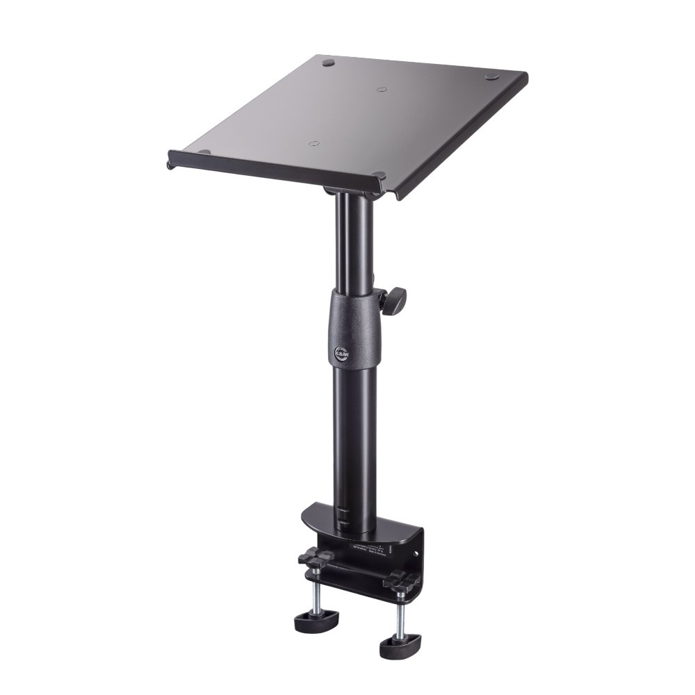 De K&M 26778 kantelbare studiomonitor tafelklem biedt een solide basis van 230 x 250 mm voor monitors tot 25 kg. Verstel de hoogte in 4 stappen, kantel de draagplaat traploos tot 12,5° en klem aan tafels met een dikte van 6 tot 52 mm.