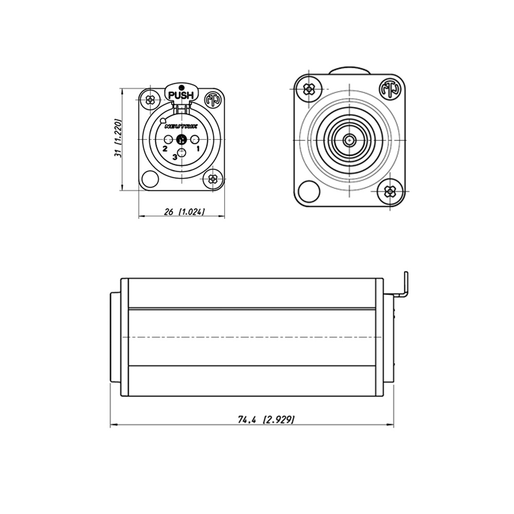 Specificaties Neutrik NA2M-D2B-TX transformator: