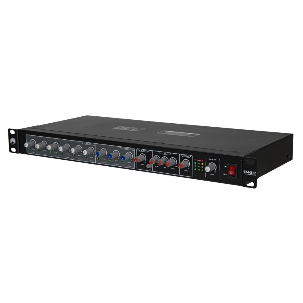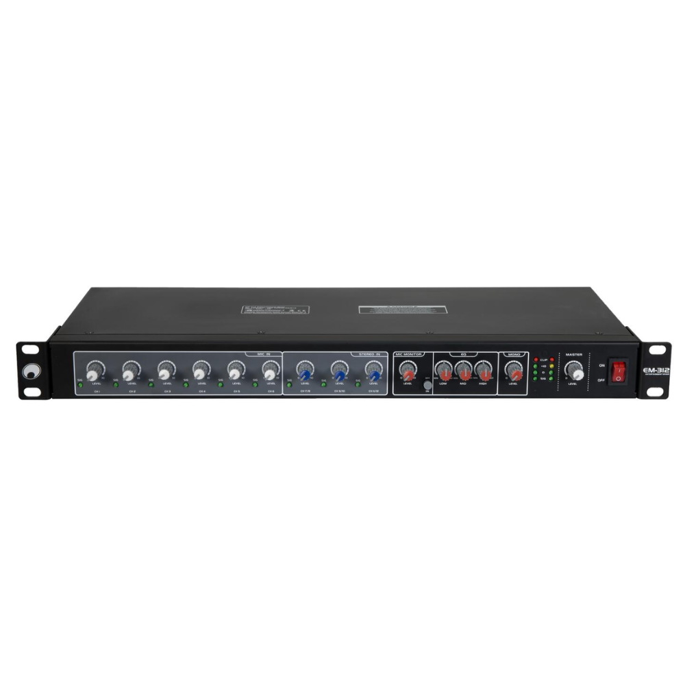 Zoek je een overzichtelijke mixer die veel bronnen tegelijk aankan? De Omnitronic EM-312 12-kanaals mixer combineert 6 mono mic/lijn-kanalen met 3 stereo-lijnkanalen in een slanke 19 inch, 1U-behuizing. Met per kanaal een 3-bands EQ en eigen volumeregeling maak je snel een heldere mix voor presentaties, karaoke, vergaderruimtes of live-sets.
