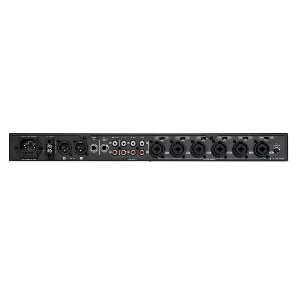 - Master stereo-uitgang via XLR en aparte mono-uitgang (6,3 mm jack)