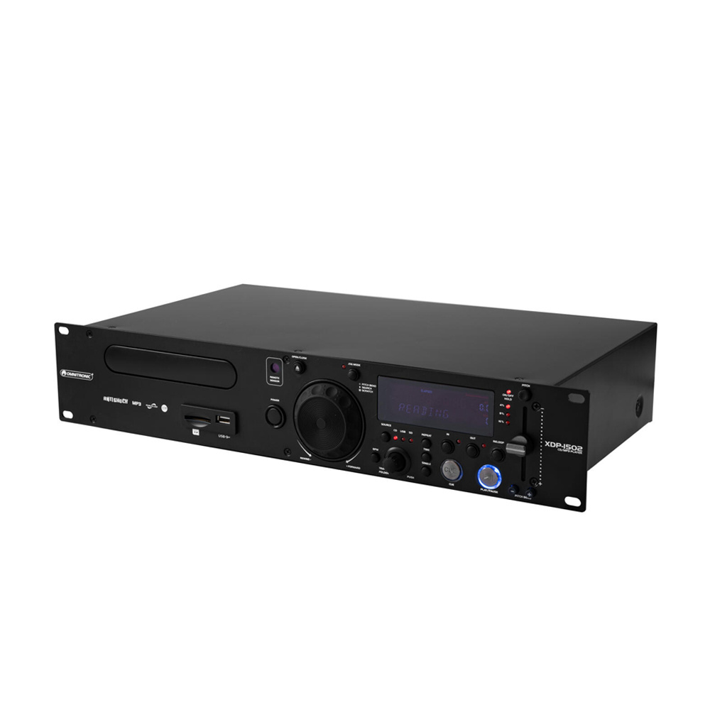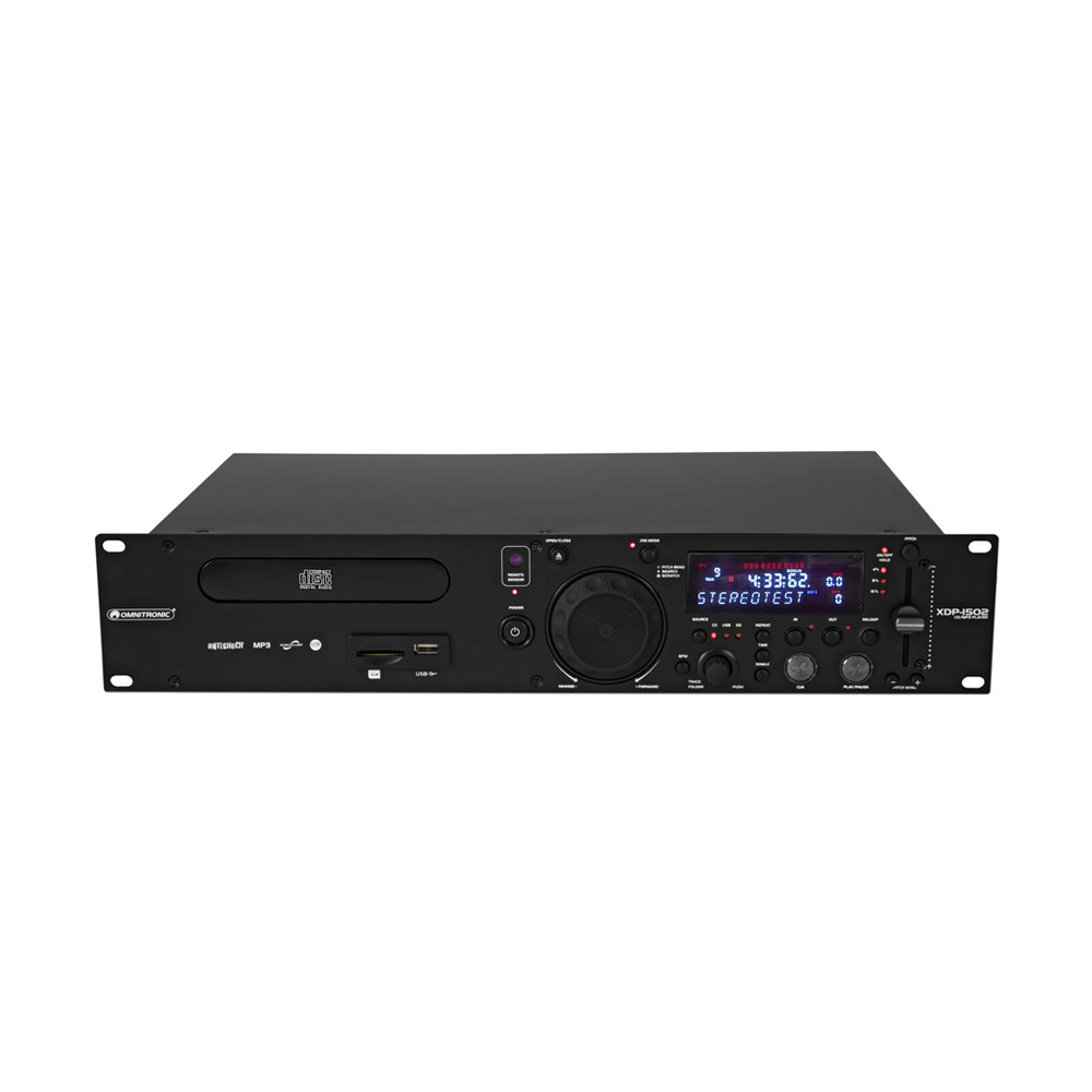 De Omnitronic XDP-1502 CD en MP3 speler is een 2U mediaspeler. Speelt CD, MP3, USB en SD. Met VFD display, jog voor pitch/zoek, cue en loop. Bediening kan direct op het apparaat zelf of met de meegeleverde IR-afstandsbediening.