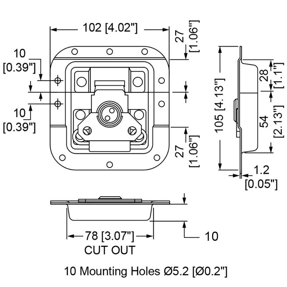 De Penn Elcom L907/928/10 vlinderslot is wat minder diep dan vele andere. Deze SMOL3-sluiting kan automatisch van voren naar achteren bewegen, heeft een 10 mm diepe schotel en steekt aan de binnenkant van een flightcase minder of niet uit.