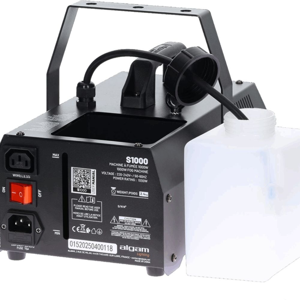 De Algam Lighting S1000 is een krachtige 1000W rookmachine met bedrade én draadloze afstandsbediening. Compact, gebruiksvriendelijk en ideaal voor het versterken van lichteffecten op feesten en professionele evenementen.