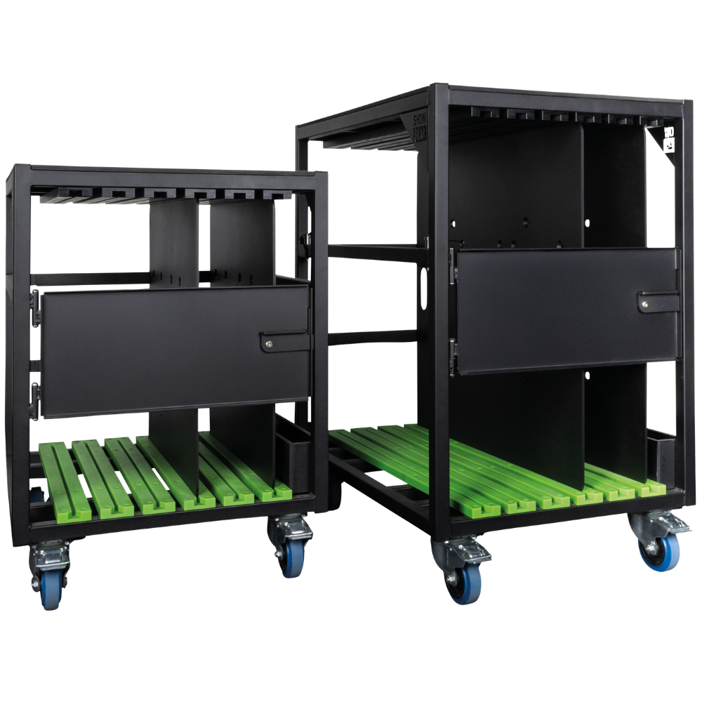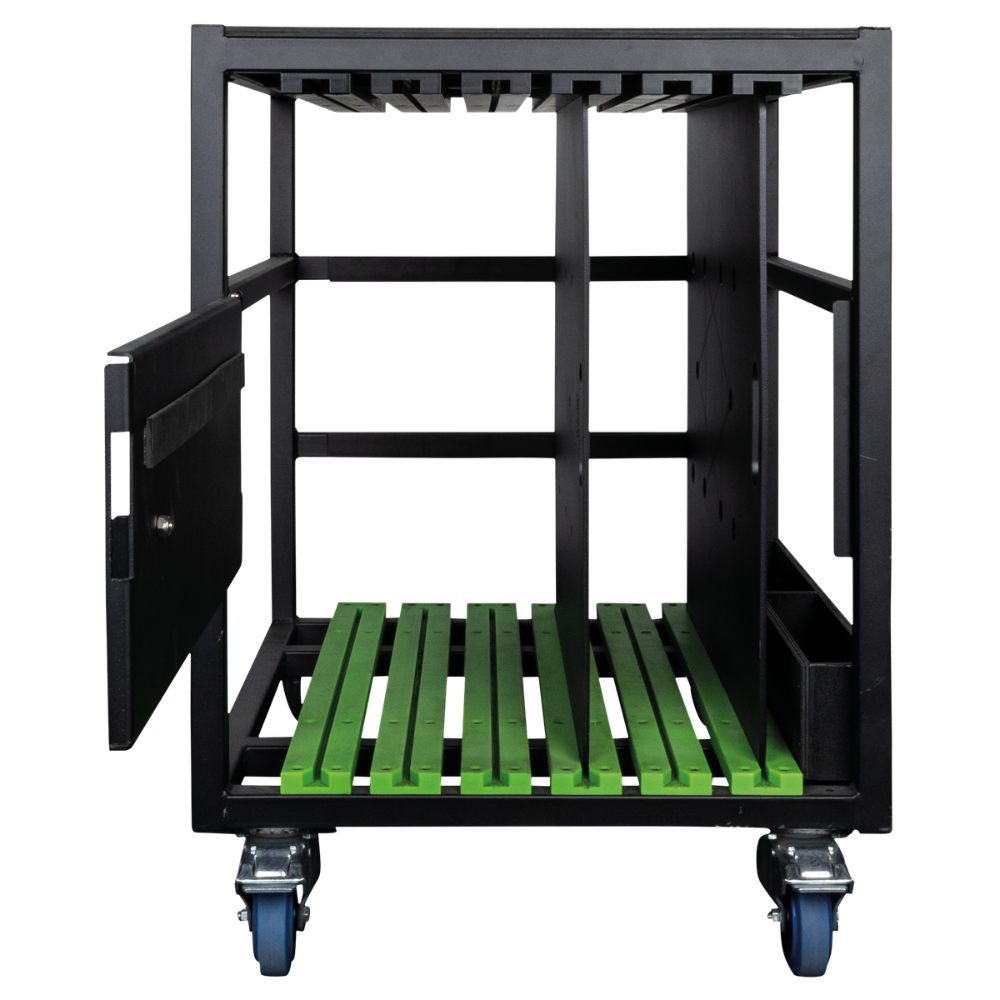 base plate trolley 600 is ontwikkeld voor het transport en de opslag van tot wel acht base plates van 600 x 600 mm. De platen blijven netjes gescheiden zodat krassen worden voorkomen, ideaal voor gebruik achter de schermen of in het magazijn.