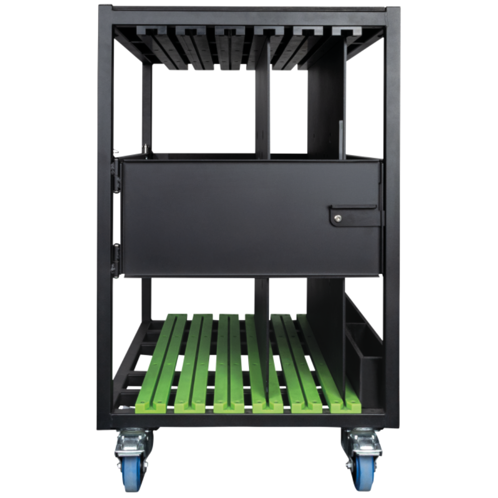 Showgear LoadMaster base plate trolley 750 biedt veilige, nette opslag tussen shows door