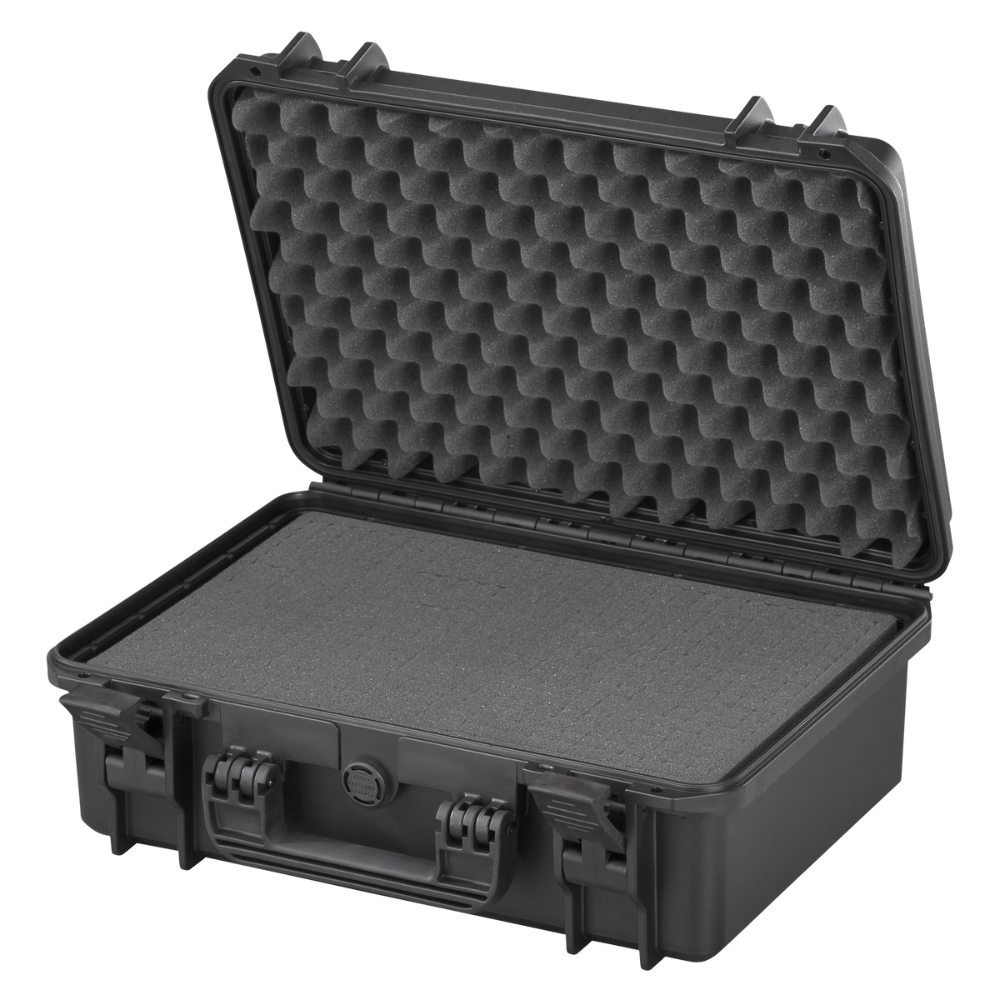 Of je nu foto-, video-, audio- of meetapparatuur meeneemt, met Showgear Vaultis kffers kies je voor een stevige kunststof behuizing die tegen een stootje kan. De dubbele scharniervergrendeling houdt alles betrouwbaar gesloten, terwijl de zwarte, heavy-duty afwerking er strak uitziet en lang mooi blijft.