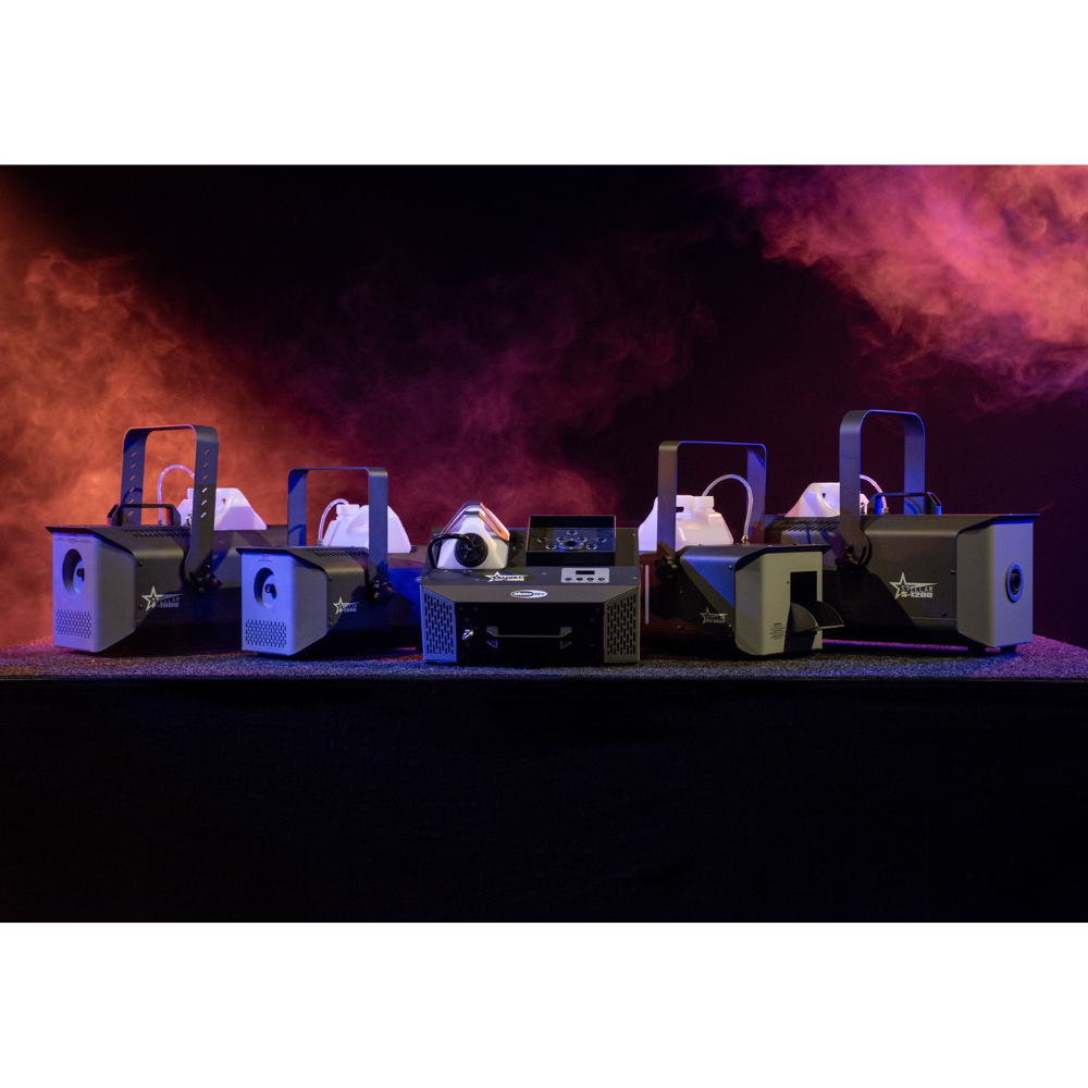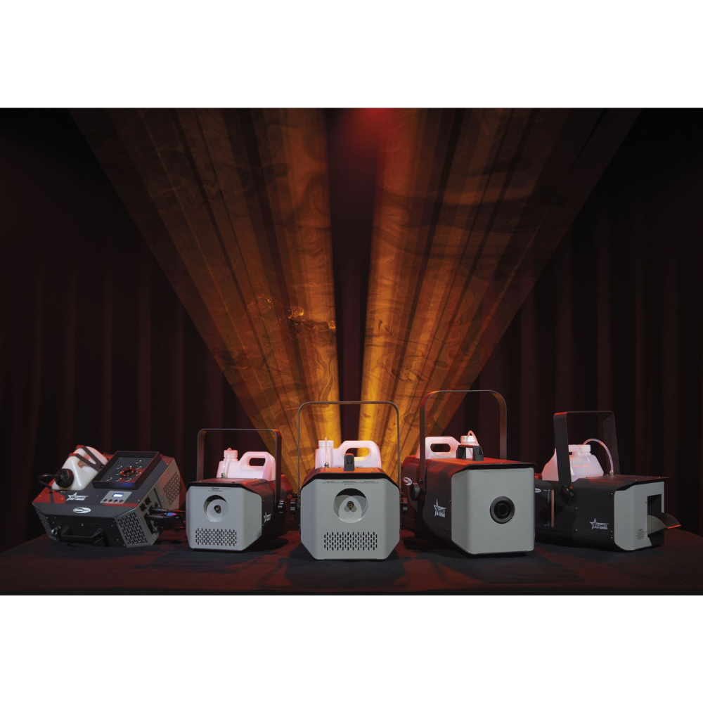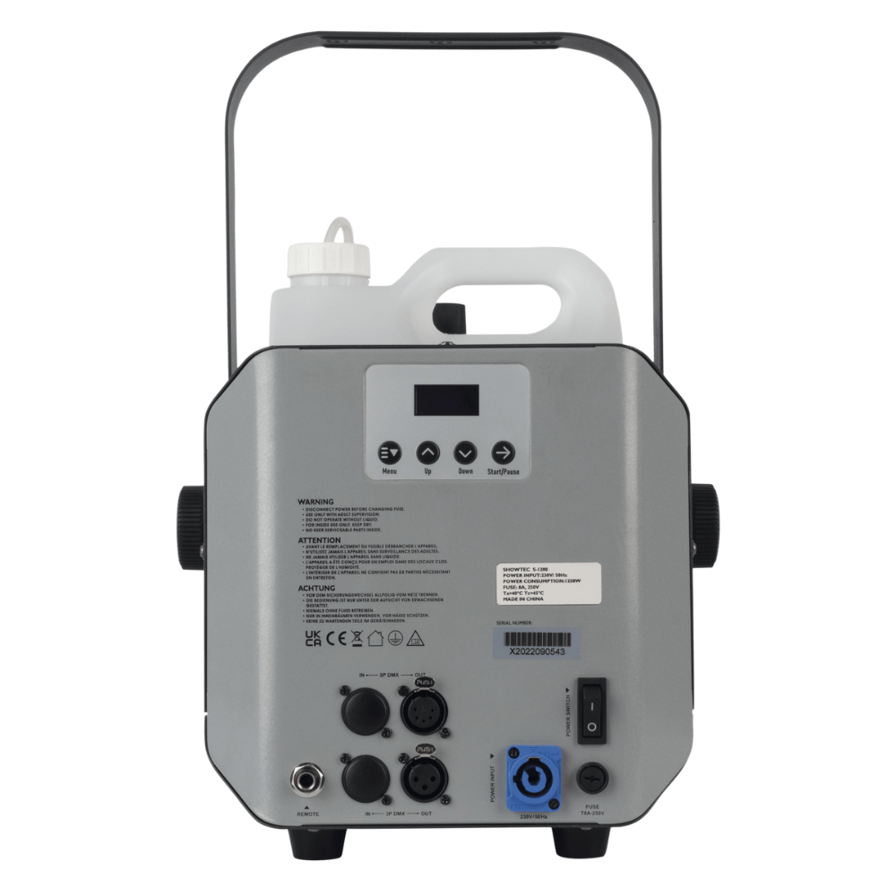 De Showtec Stellar S-1200 sneeuwmachine 1200W is een compacte sneeuwmachine die met zijn 5 liter-vloeistoftank toch behoorlijk veel sneeuw produceert. Besturing gaat snel via het heldere lcd-scherm. Hierop kies je voor handmatige besturing of via DMX of optionele afstandsbediening. De machine is eenvoudig mee te dragen aan zijn handvat, of horizontaal te bevestigen aan de handige beugel. Met zijn IP20-keurmerk is de Stellar S-1200 geschikt voor binnengebruik.