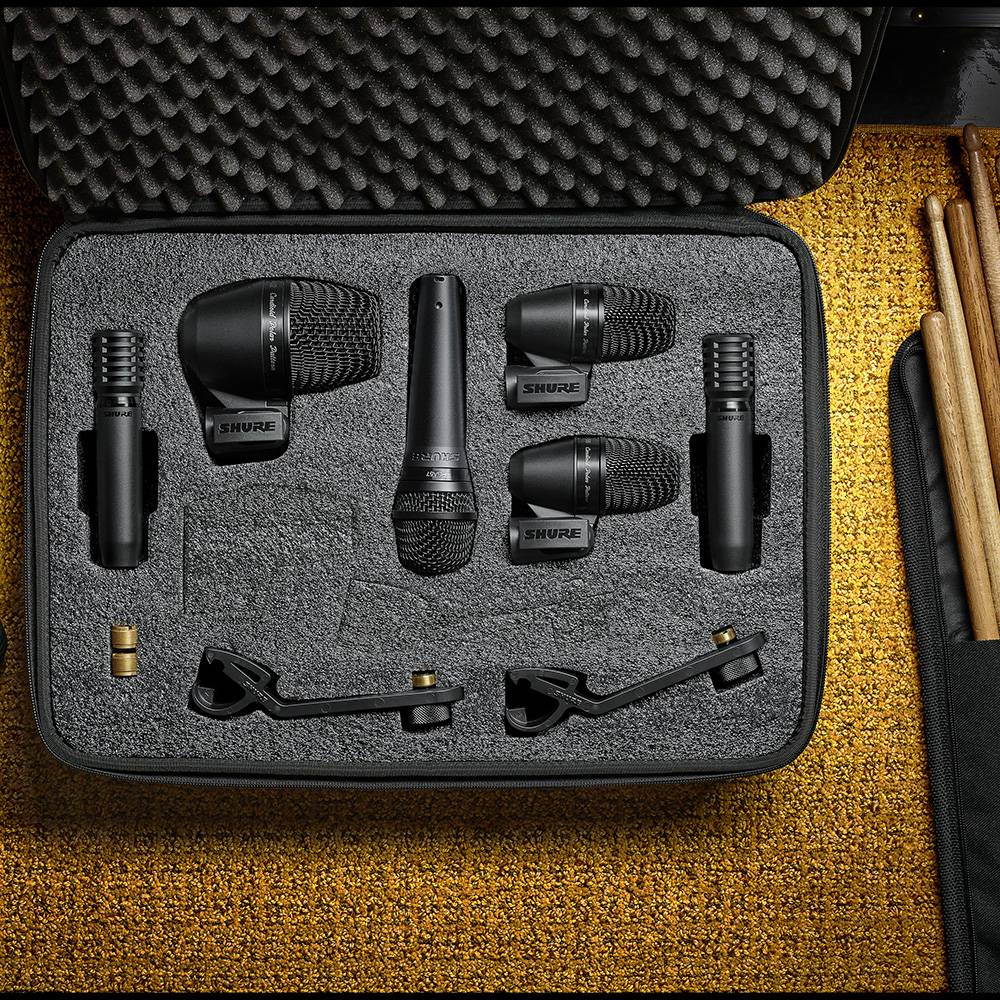 Op zoek naar een goede manier om je drumstel uit te versterken, zonder daarvoor de hoofdprijs te betalen? Deze Shure PGADRUMKIT6 set bestaat uit 6 drummicrofoons uit de instapserie van Shure. In de kunststof koffer zien we 6 microfoons. De PGA52 is geschikt voor het versterken van de kickdrum, de twee PGA81 microfoons zijn geschikt als overheadmicrofoon en voor de snare, toms en overige percussie zijn twee PGA56 en één PGA57 microfoons aan de set toegevoegd.
